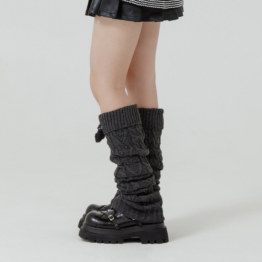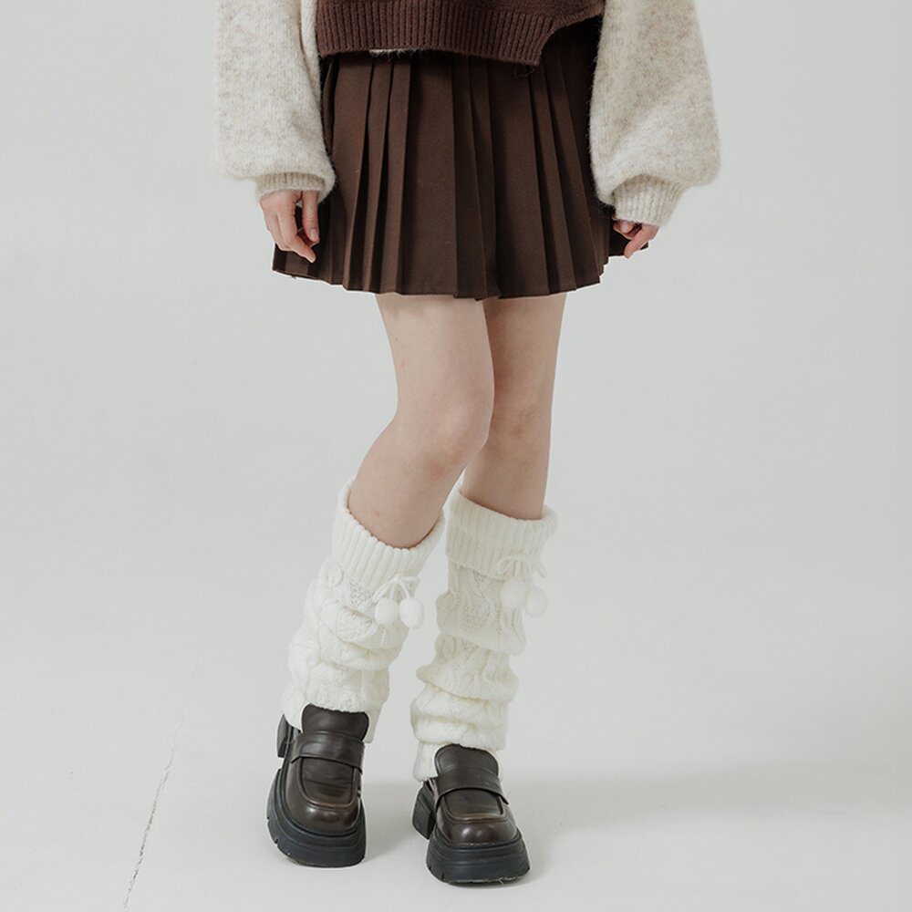 QUEENSHOP 2026春夏新品女装素面麻花球球蝴蝶结针织袜套07130051