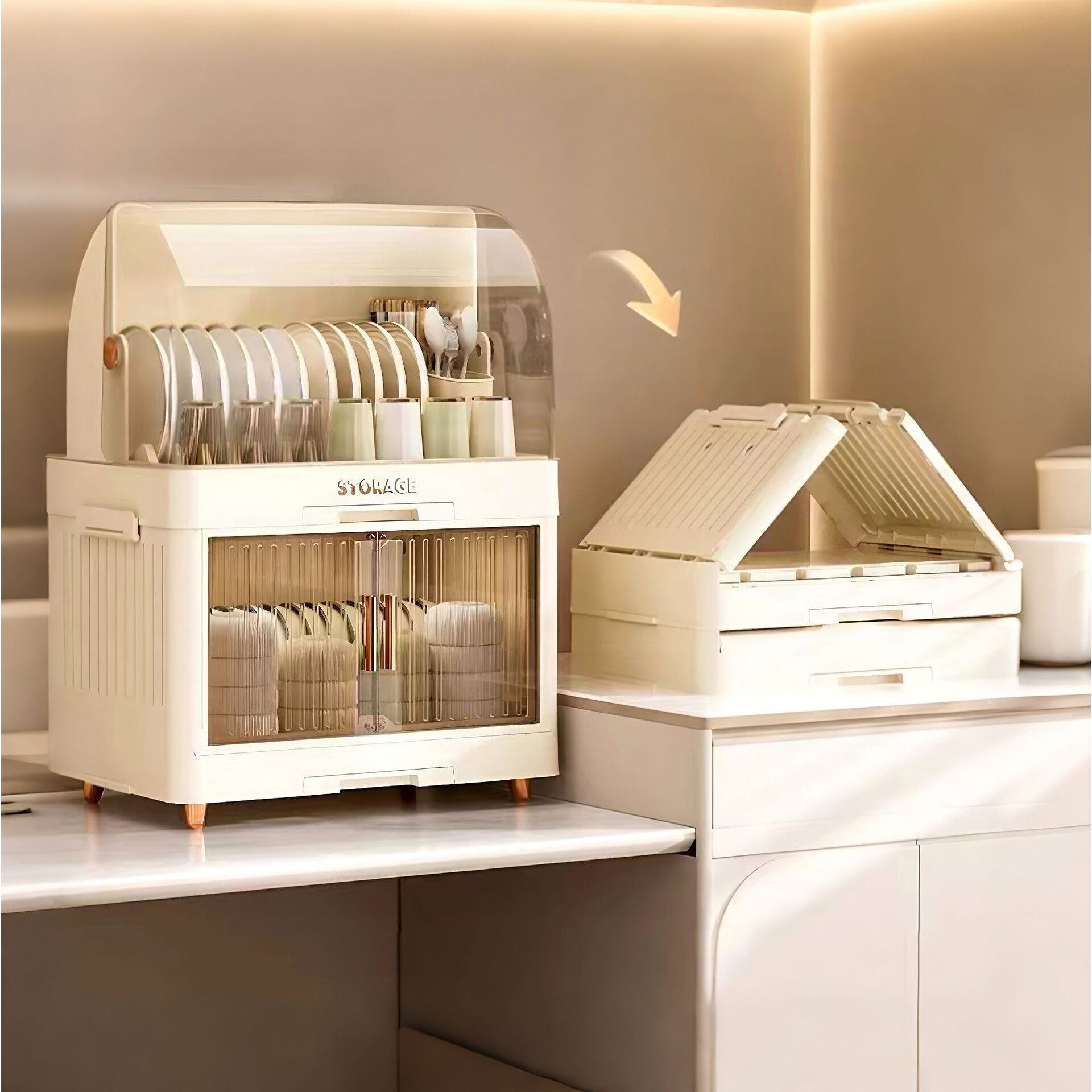 厨房碗碟收纳置物架 双层碗柜带盖防尘大容量碗盘沥水餐具收纳架