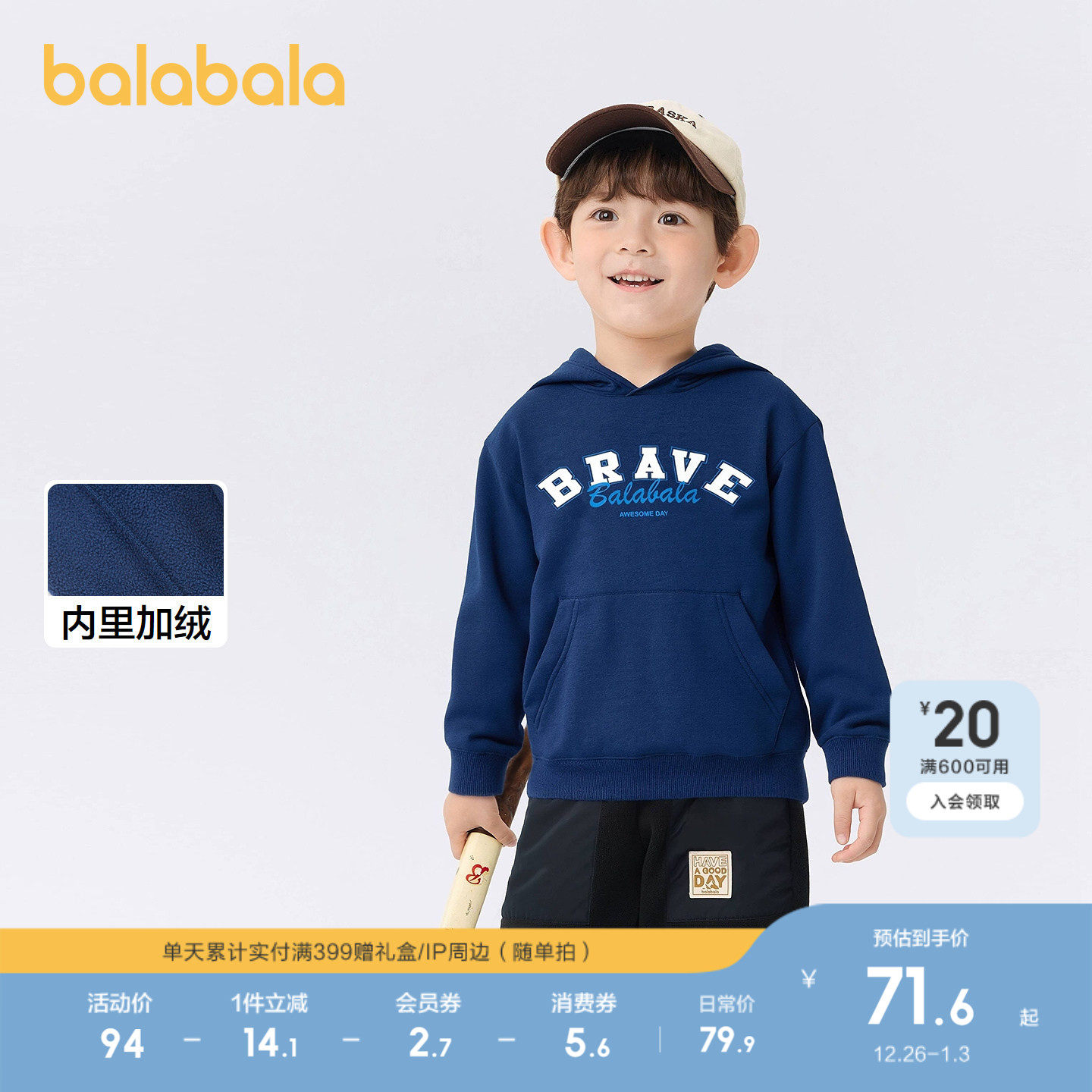 巴拉巴拉童装儿童卫衣男童秋冬女童加绒保暖连帽上衣洋气时尚舒适