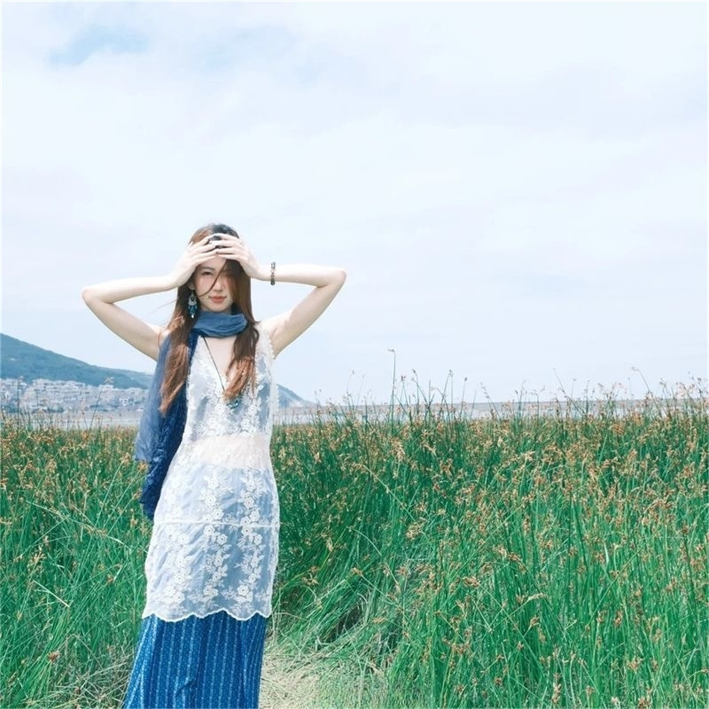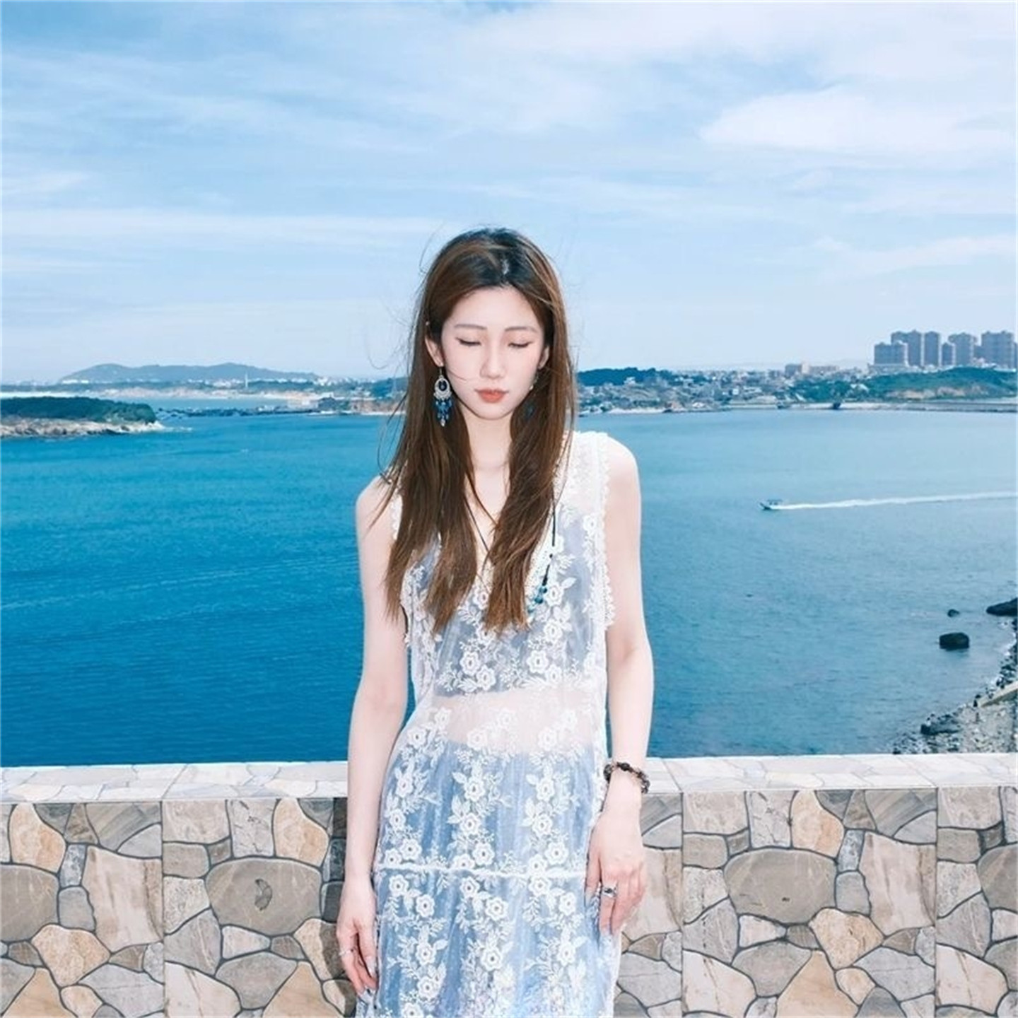 波西米亚风蓝色耳坠小众设计感度假风显脸小镂空金属串珠流苏耳饰