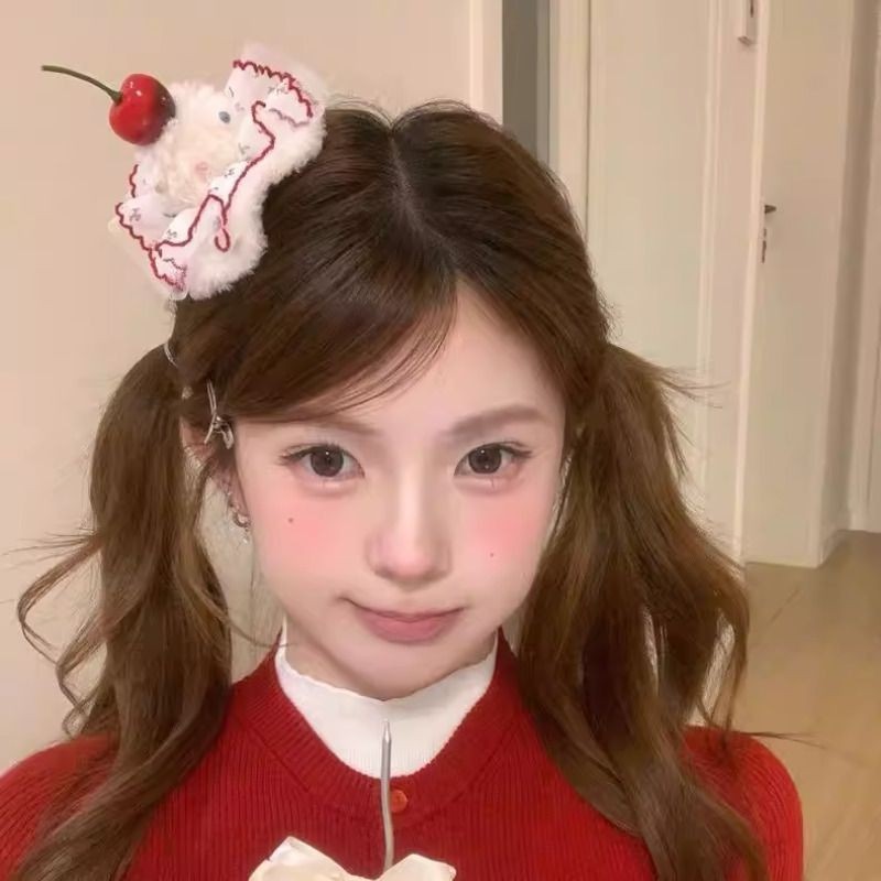 红色豹纹樱桃蛋糕发夹鸭嘴夹跨年新年氛围感拍照发饰发卡头饰发饰