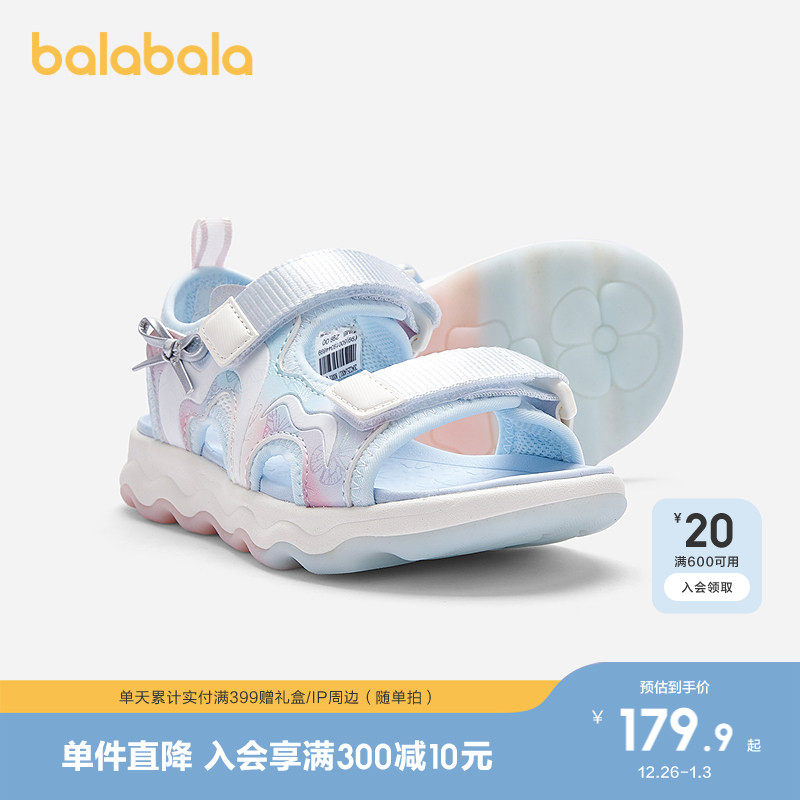巴拉巴拉童鞋儿童运动凉鞋女童沙滩鞋子2025夏季新款防滑透气鞋子