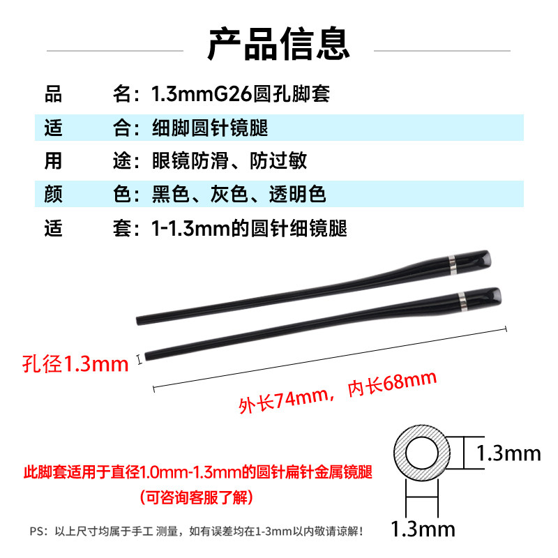 眼镜脚套镜腿小圆孔防滑腿套金属腿细针防过敏防磨耳板材舒适配件