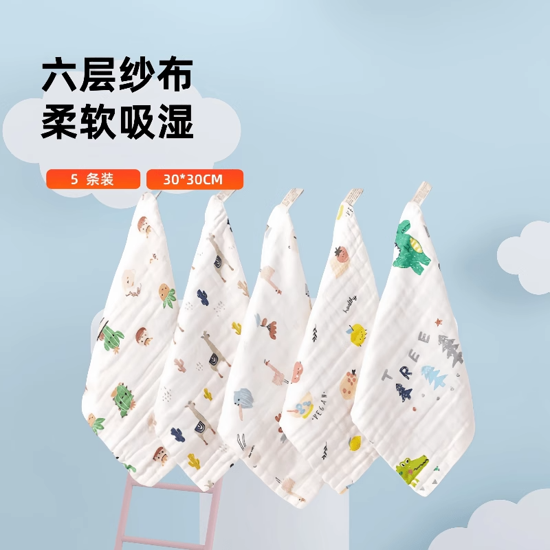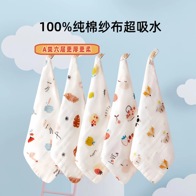 宝宝口水巾纯棉纱布婴儿方巾柔软卡通儿童洗脸巾新生儿小方巾童巾