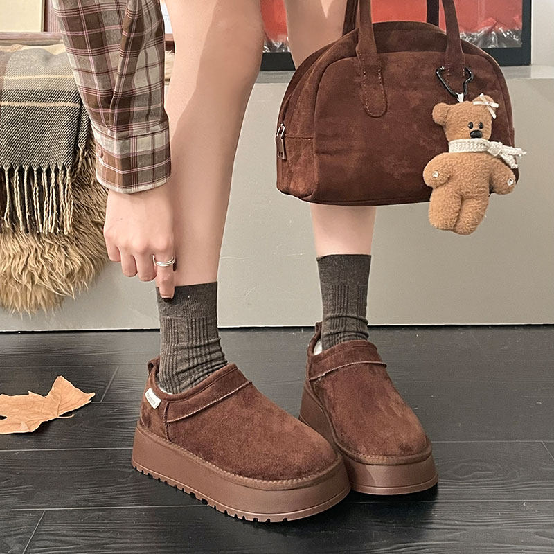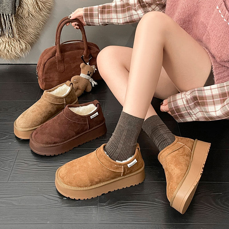 低帮厚底雪地靴女2025新款冬季懒人一脚蹬毛毛棉鞋加绒加厚女鞋子