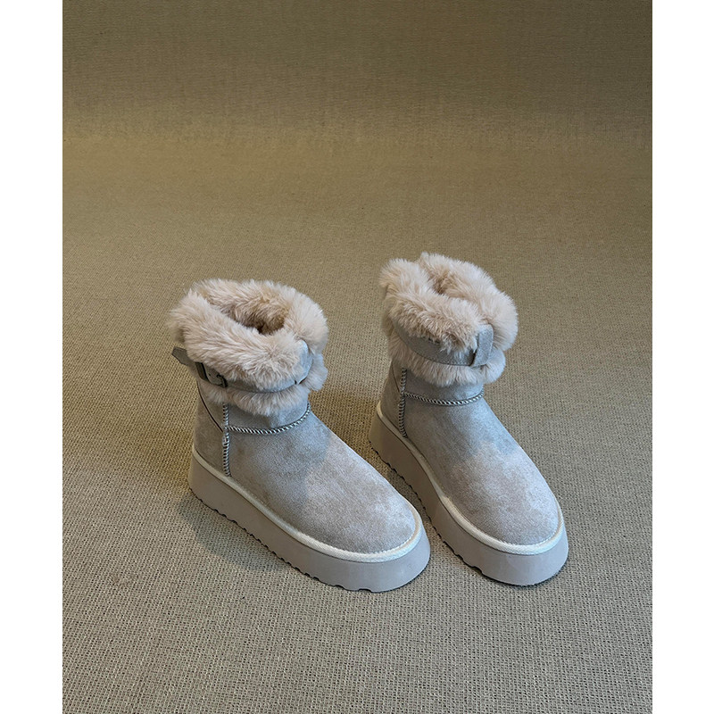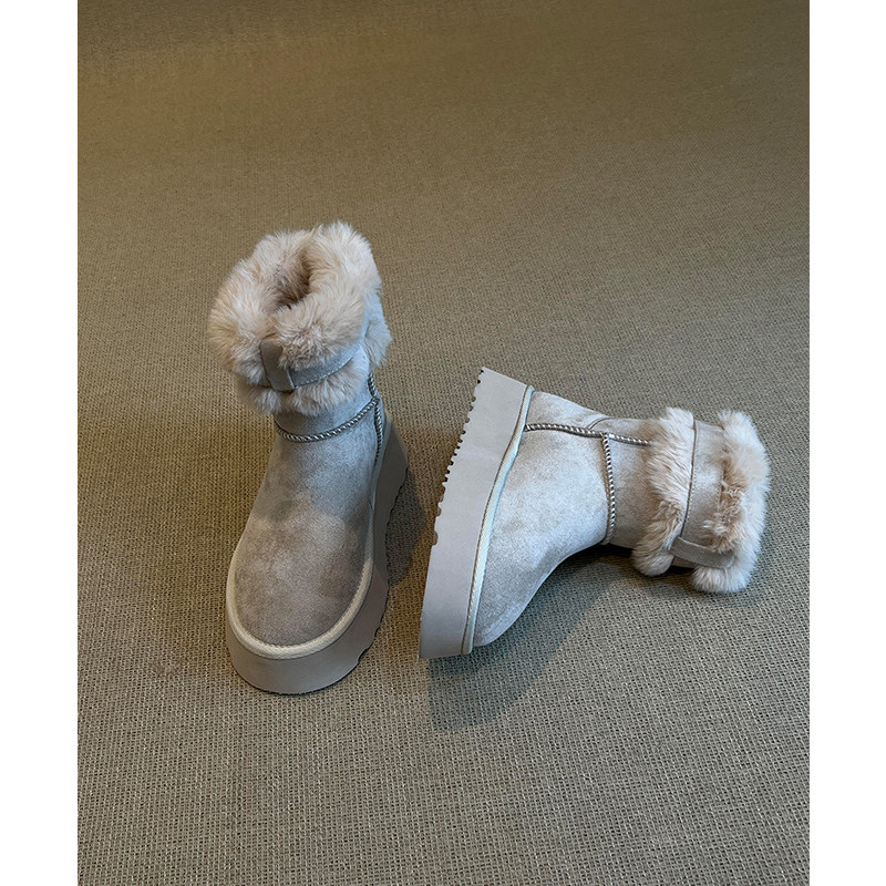5CM增高厚底雪地靴女复古皮毛一体短靴冬季加绒保暖东北毛毛棉鞋