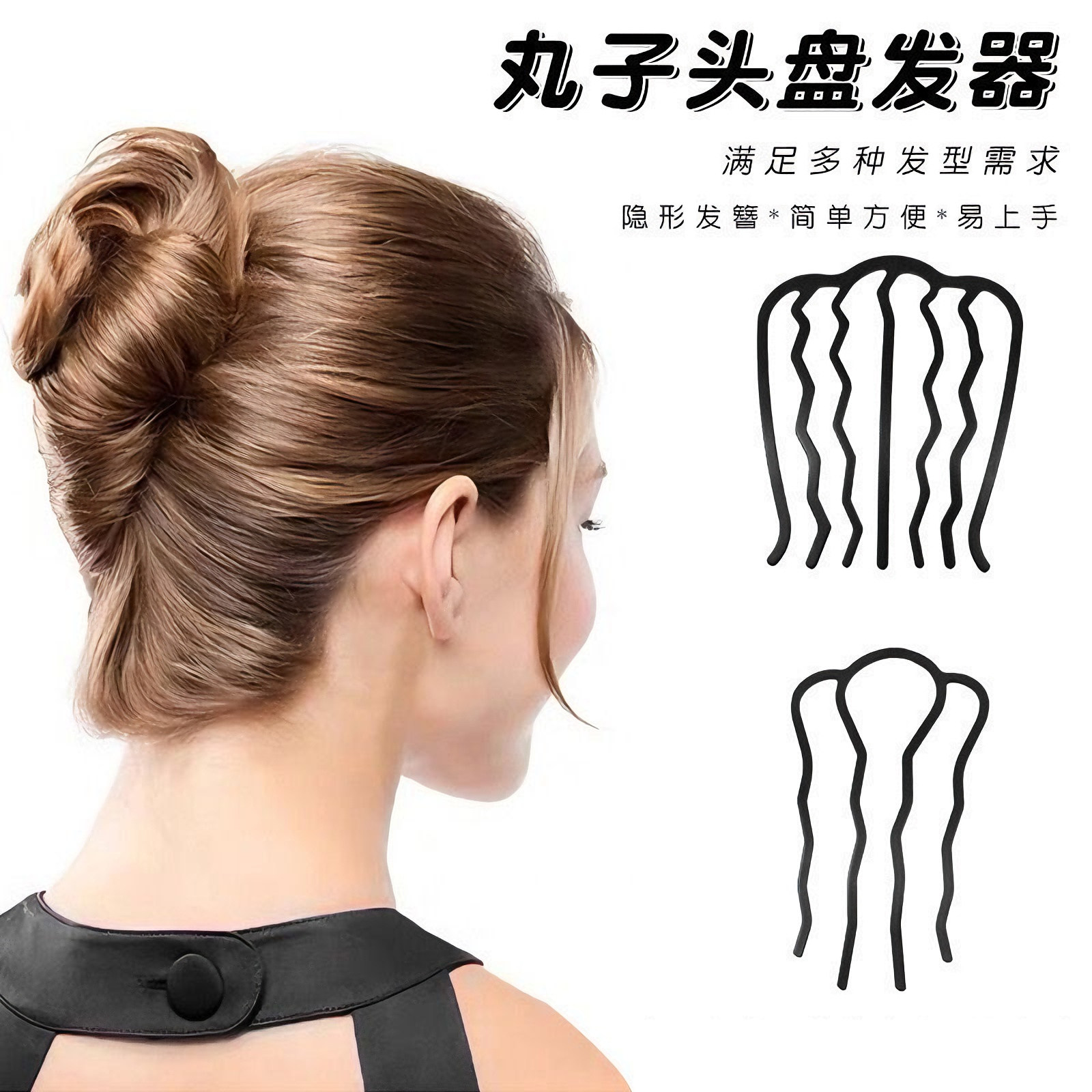 懒人盘发神器丸子头插梳发梳发簪倒插黑色u型发夹职业造型头饰女