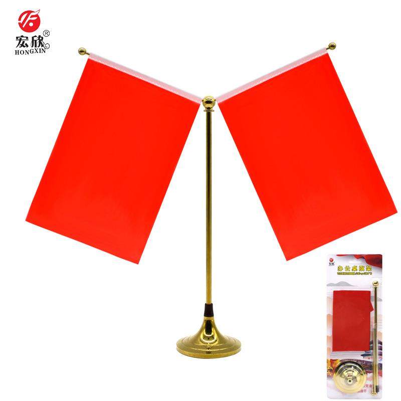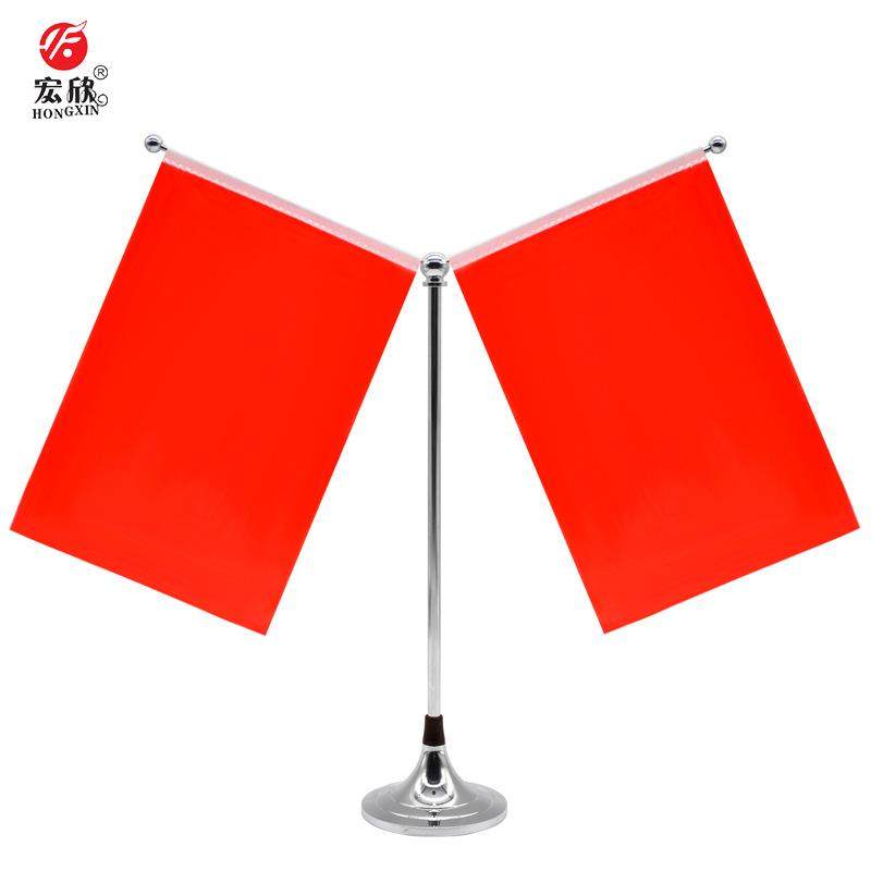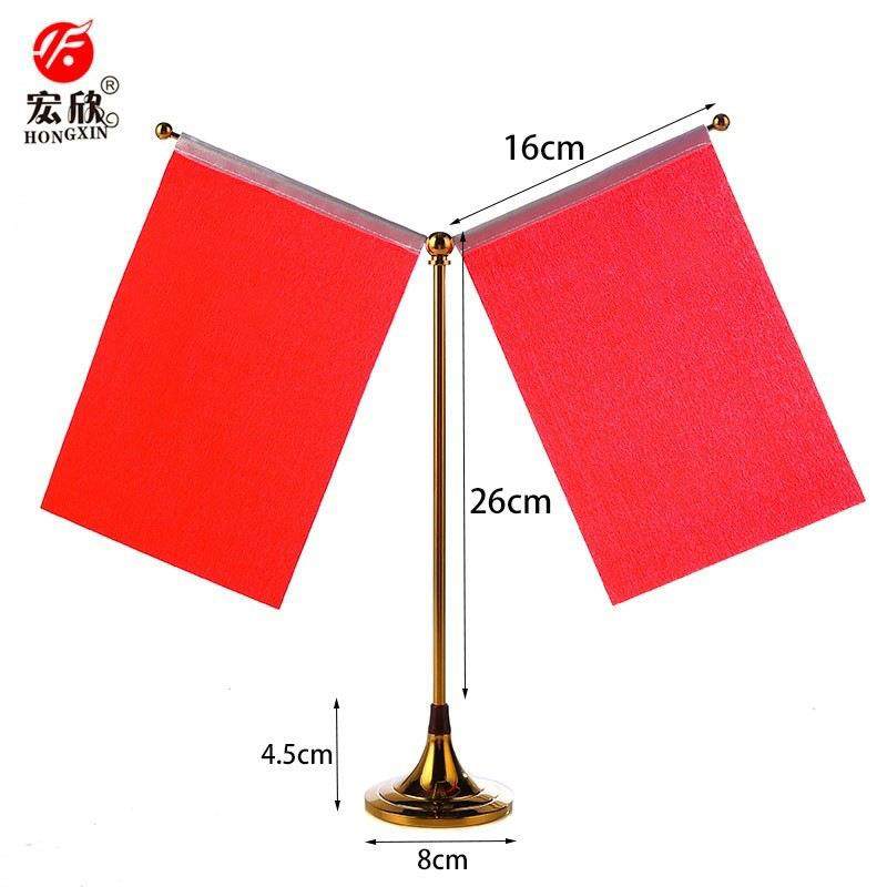 办公桌旗杆底座全金属办公桌旗桌面台旗摆件Y型旗架钛金电镀旗帜
