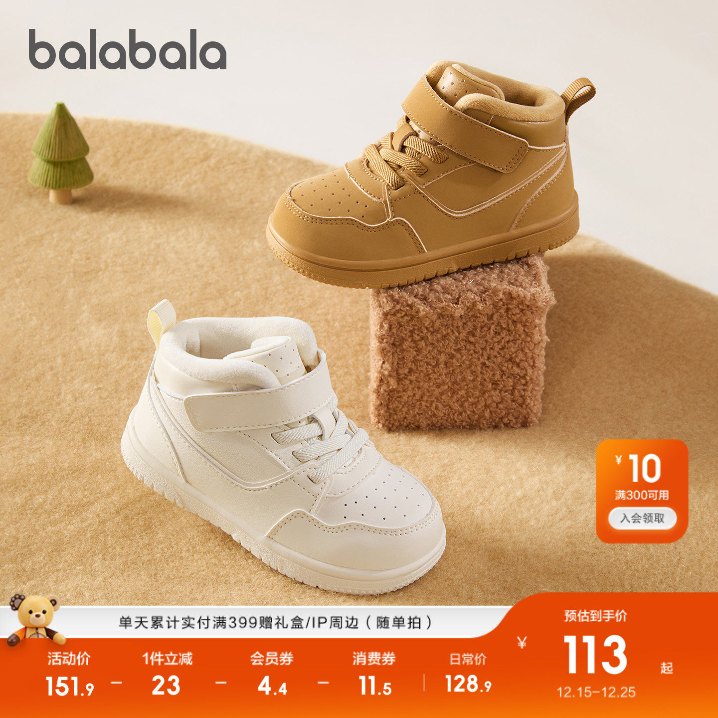 巴拉巴拉童鞋儿童板鞋男女童学步鞋宝宝2025新款秋冬高帮鞋子加绒