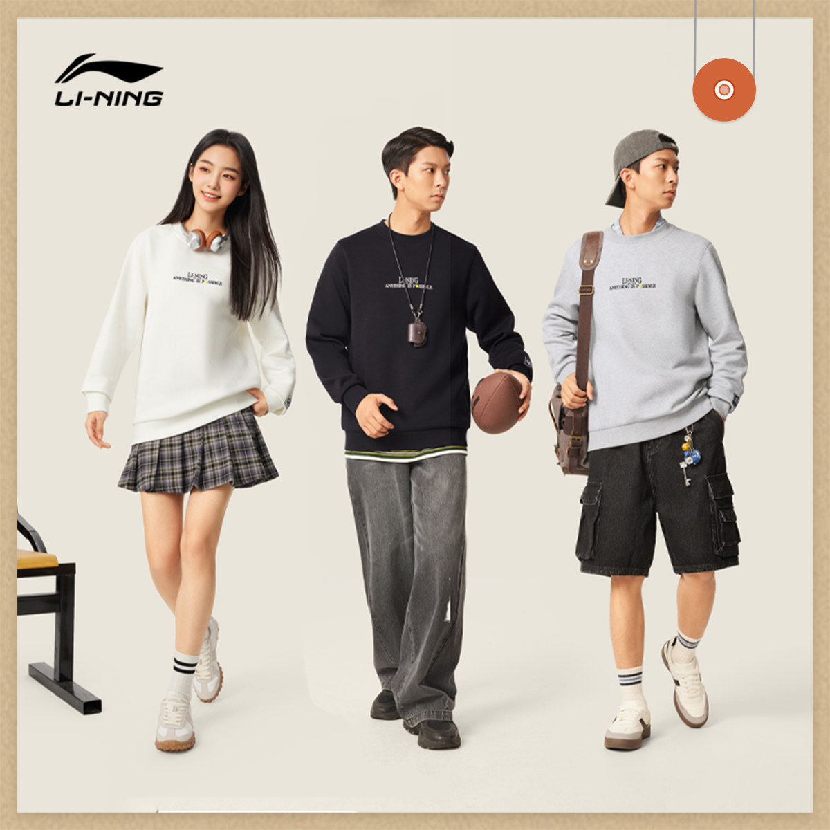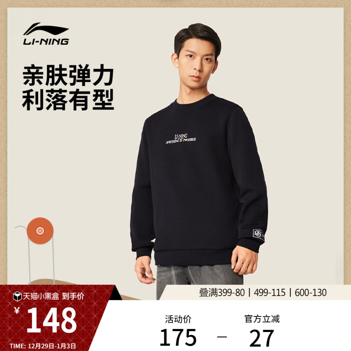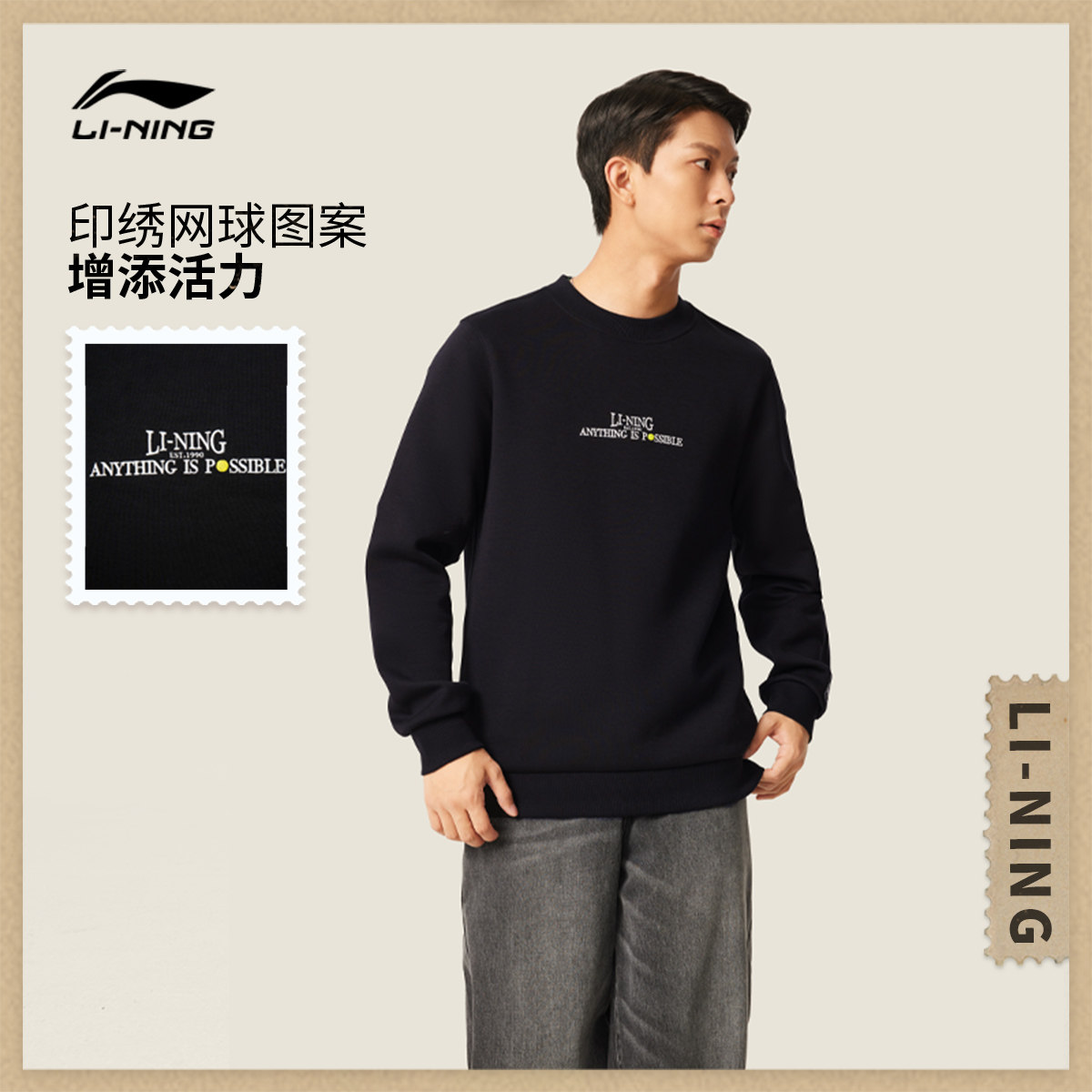 李宁卫衣男士官方新款运动潮流系列套头衫长袖圆领休闲针织运动服