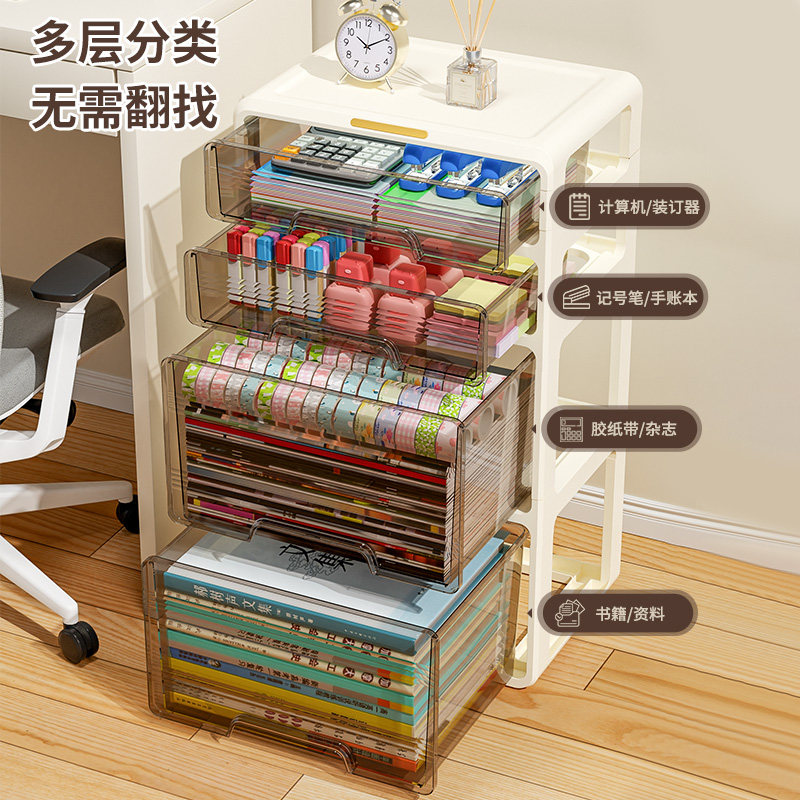 桌下收纳柜抽屉式文件柜办公室桌面文具收纳盒多层储物塑料置物柜