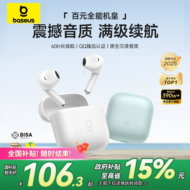 [政府补贴15%]倍思M3s蓝牙耳机降噪无线2025新款适用小米苹果OPPO