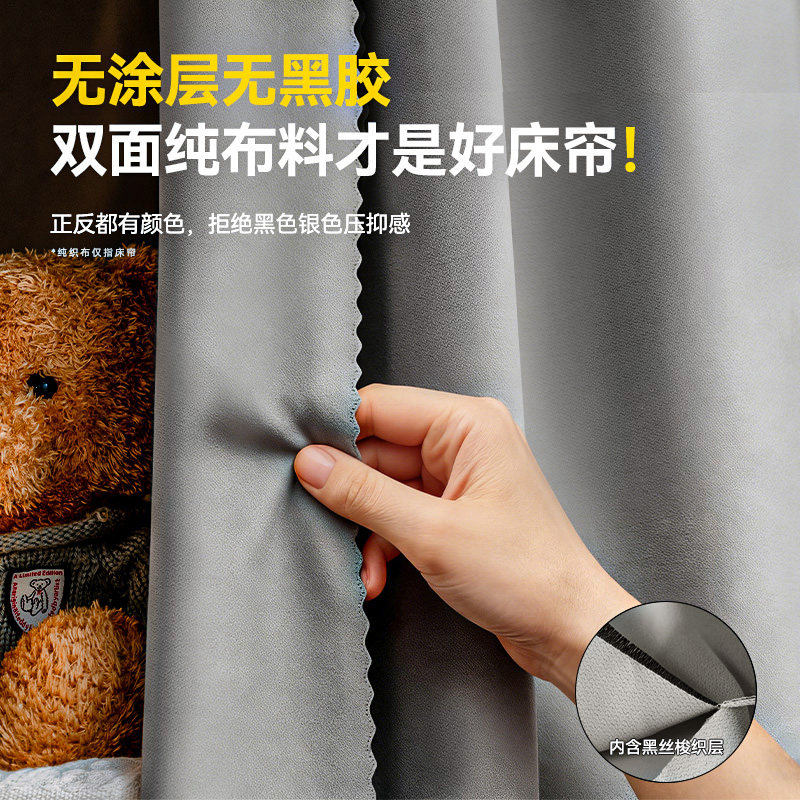 上铺全遮光床帘三层加厚床幔无涂层纯布帘子学生下铺遮挡帘桌帘