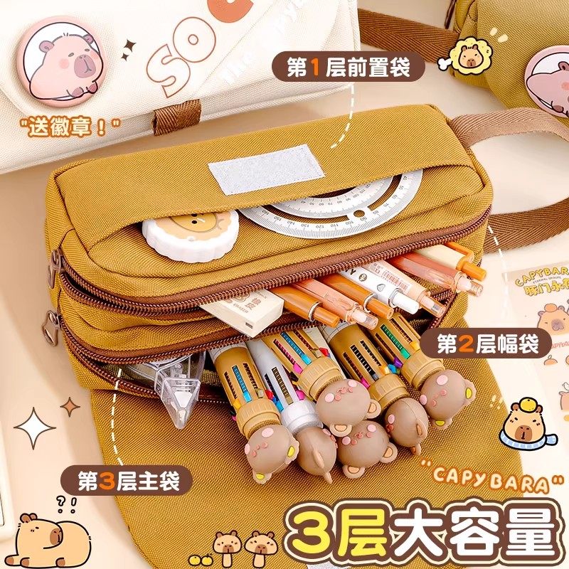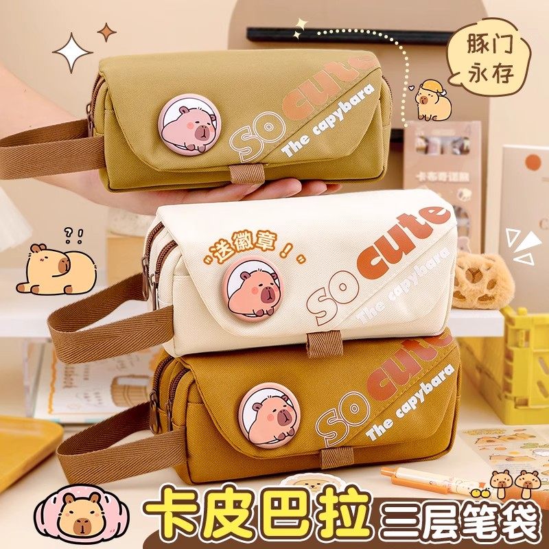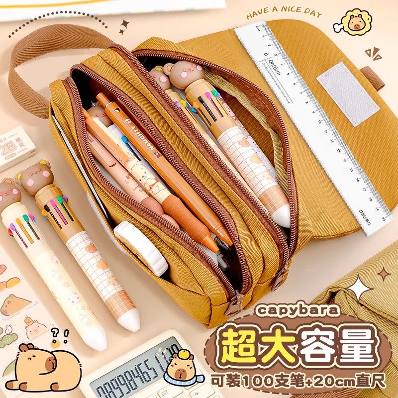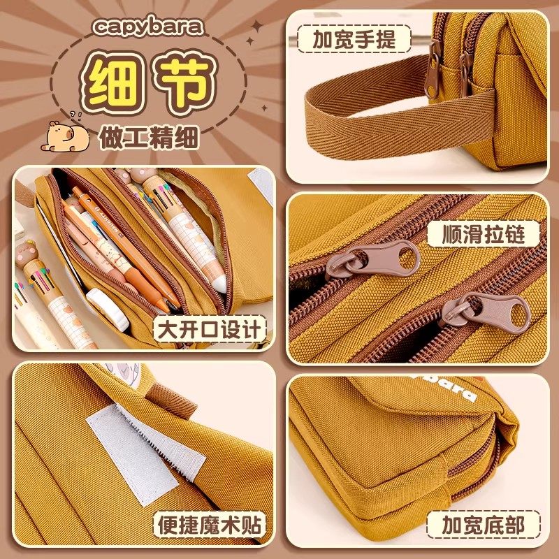 卡皮巴拉笔袋女小学生文具盒一二年级男孩大容量卡通可爱铅笔盒幼儿园多功能帆布文具袋