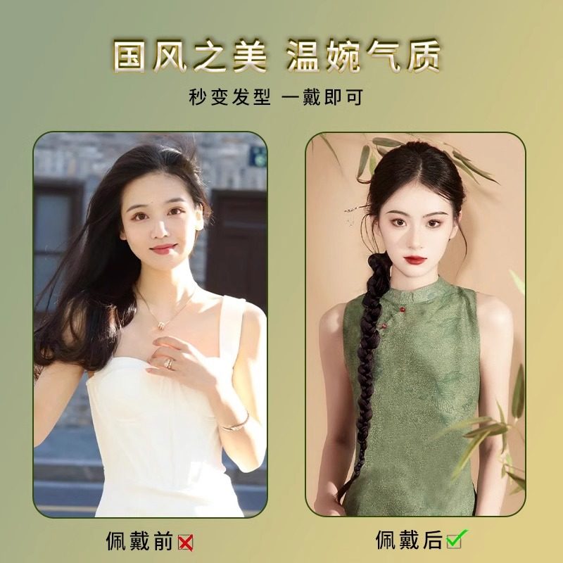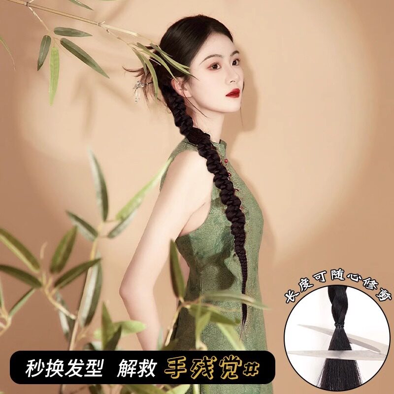 国风假发扭扭麻花女新中式马尾长辫侧边辫子辫拳击辫发型编发甜酷
