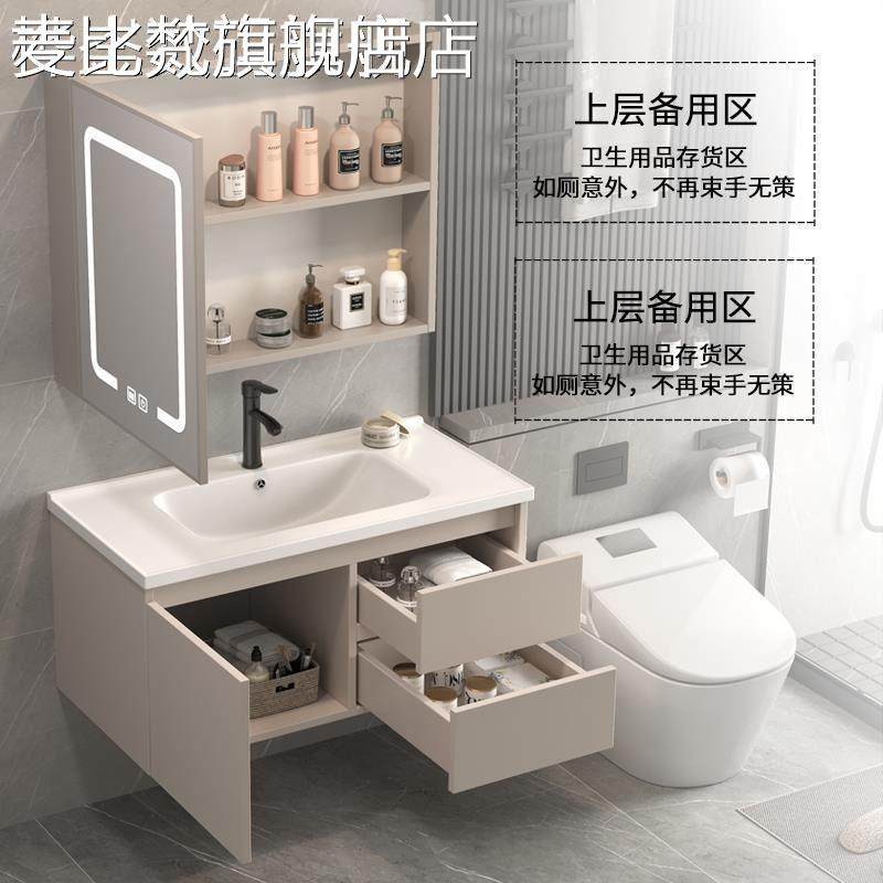 麦比梵现代简约太空铝浴室柜组合卫生间洗脸盆洗漱台洗手台面盆智能镜柜摆件饰品垫垫床笠拉车