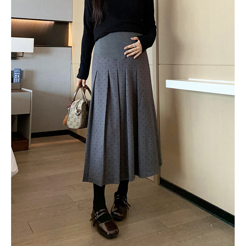 婧麒孕妇装新款波点百褶裙子冬装圣诞穿搭秋冬孕期高级孕妇半身裙