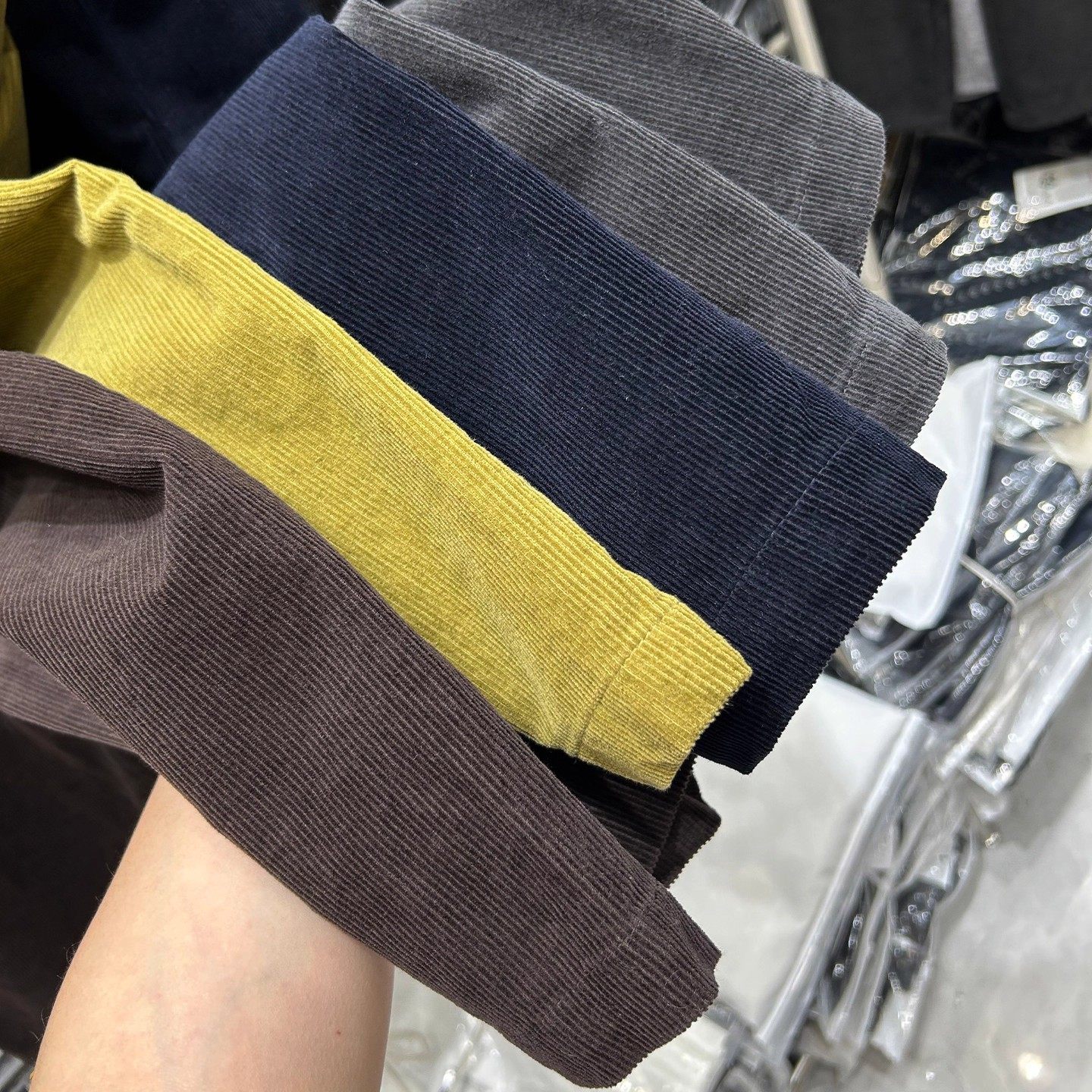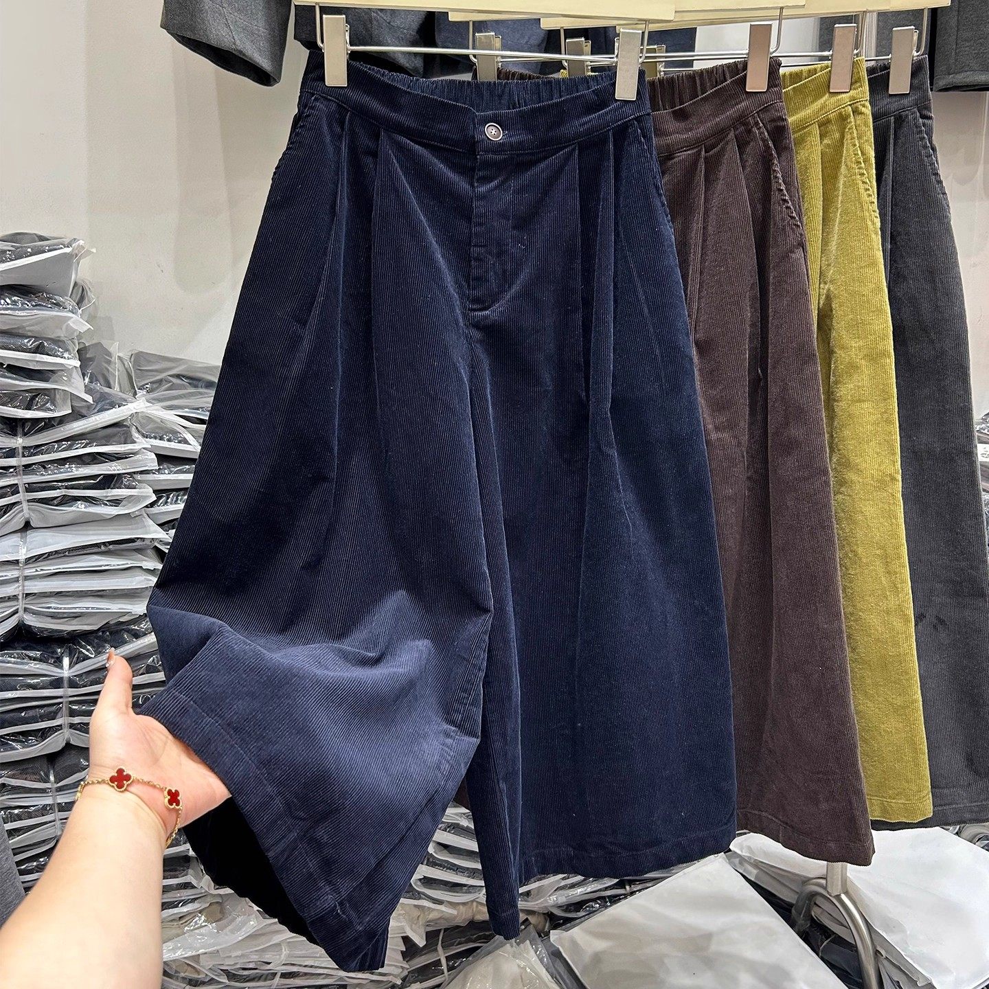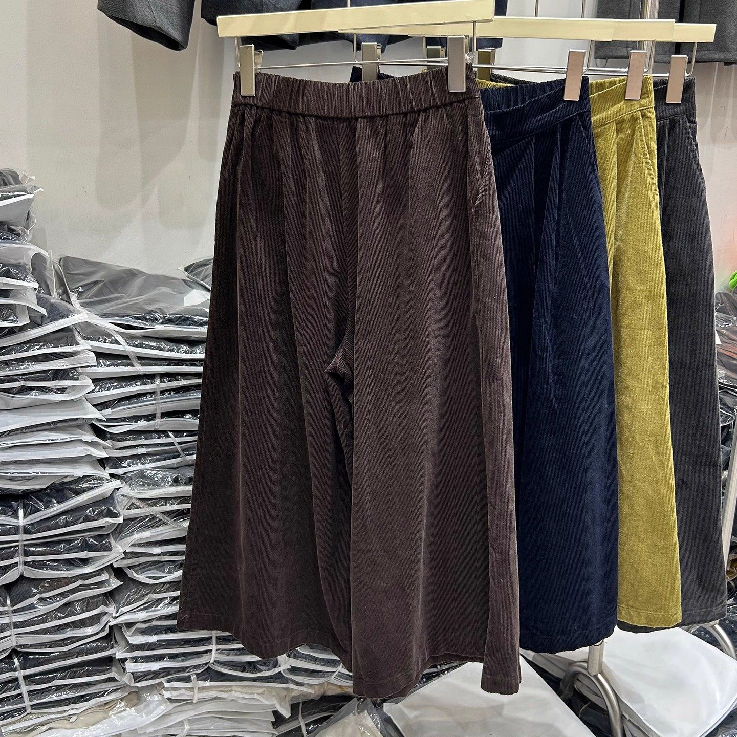 七八分阔腿裤大码冬加绒加厚灯芯绒高腰宽松直筒裤小个子条绒靴裤