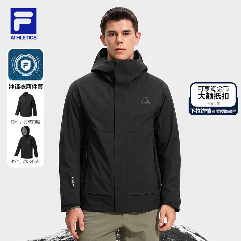 黄景瑜同款FILA斐乐男羽绒25冬新户外三合一鹅绒呼吸壳外套冲锋衣