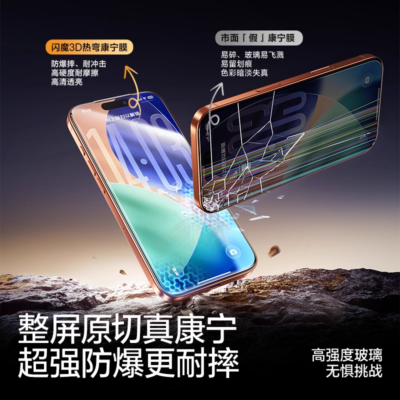 闪魔康宁膜Ultra新款3D热弯AR抗反射适用苹果17ProMax增透钢化膜iPhone16pro手机屏幕贴膜15pm全屏覆盖ip防摔