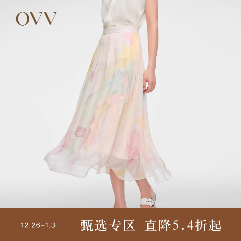 【艺术家联名】OVV春夏热卖女装6MM印花真丝A字半身裙