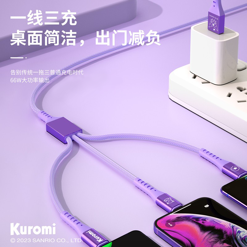 三丽鸥数据线三合一充电线66w手机快充一拖三适用苹果华为安卓type-c三头6A玉桂狗库洛米帕恰狗美乐蒂可爱萌