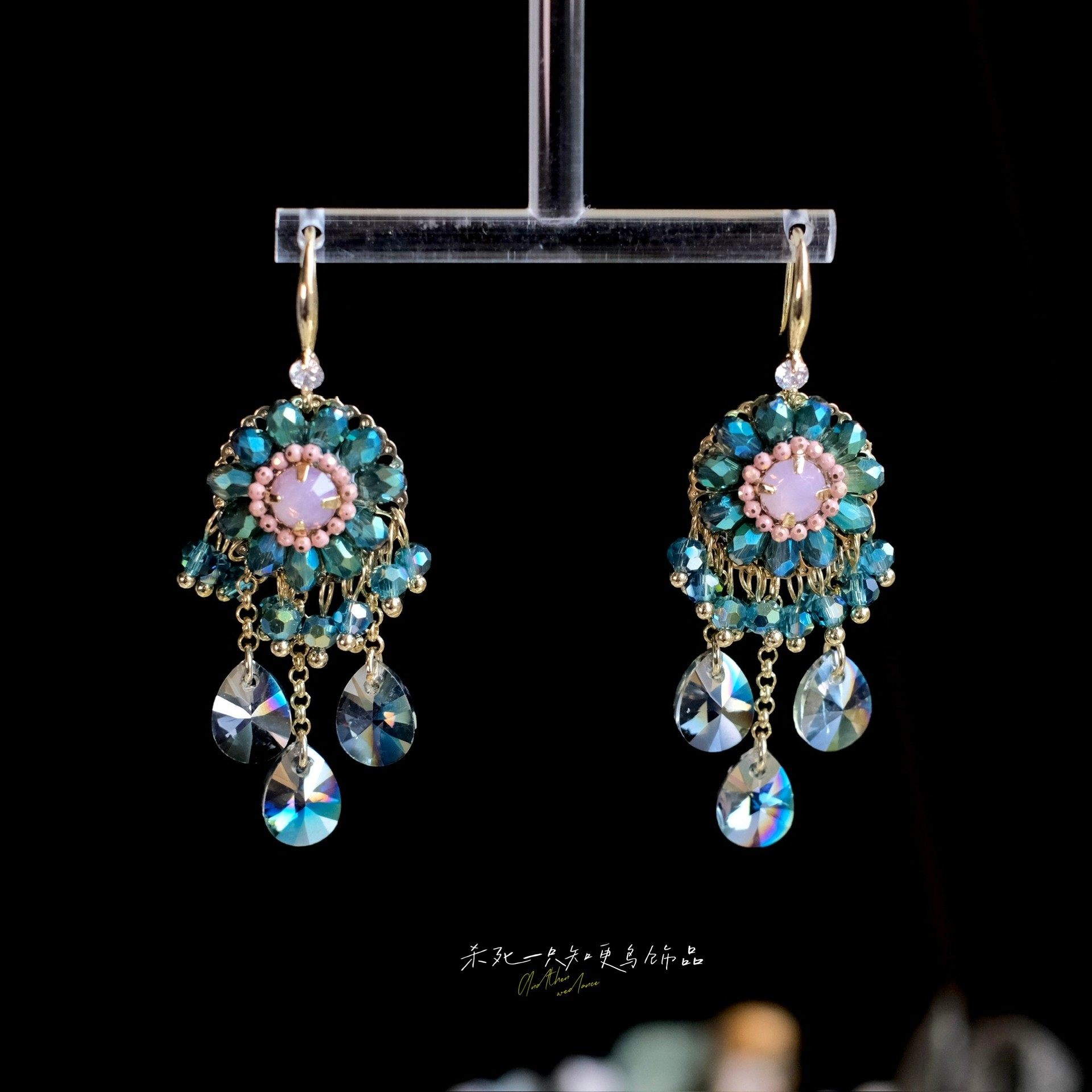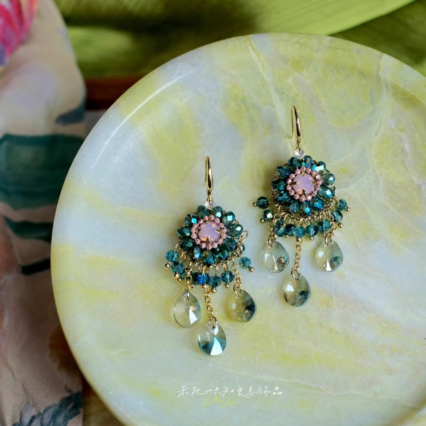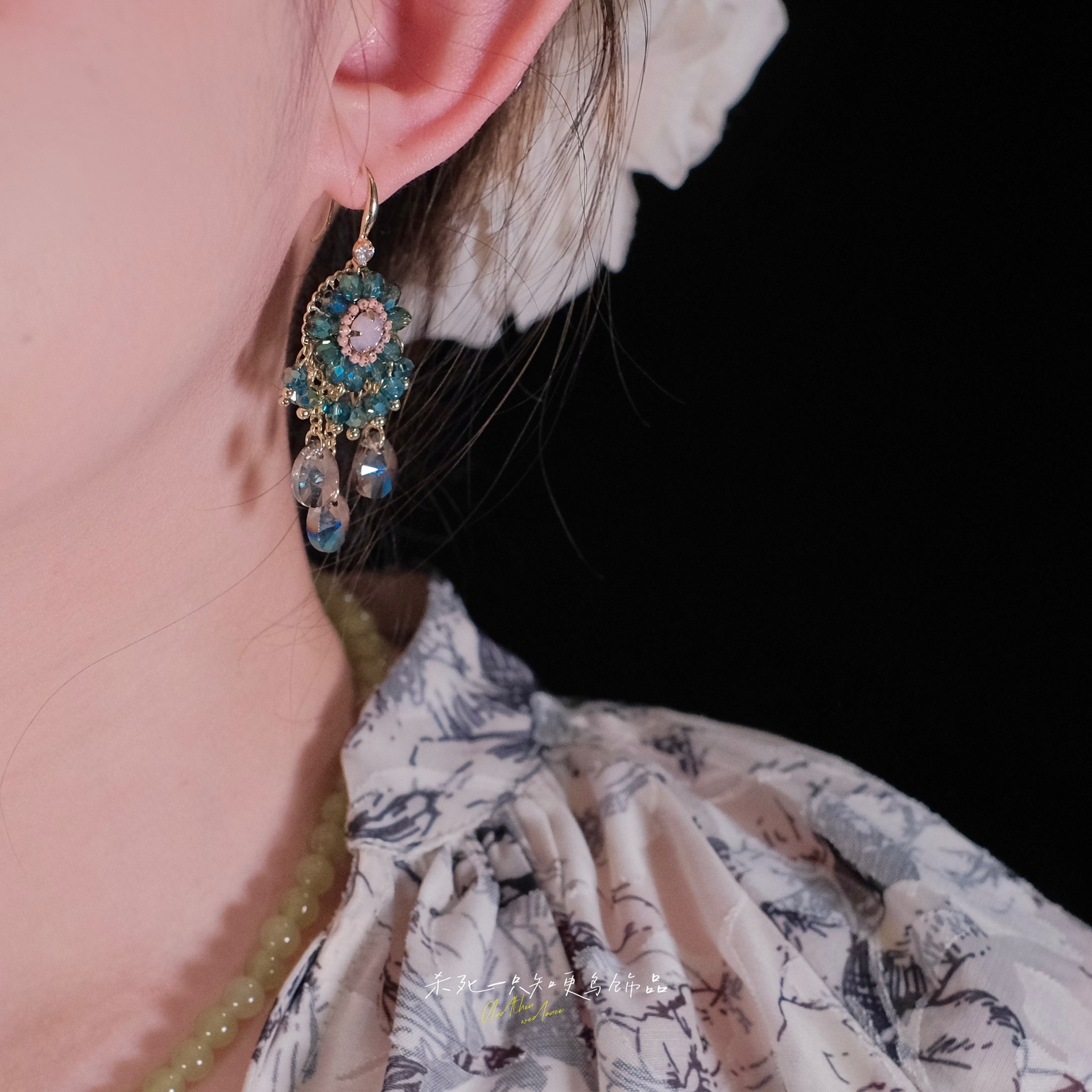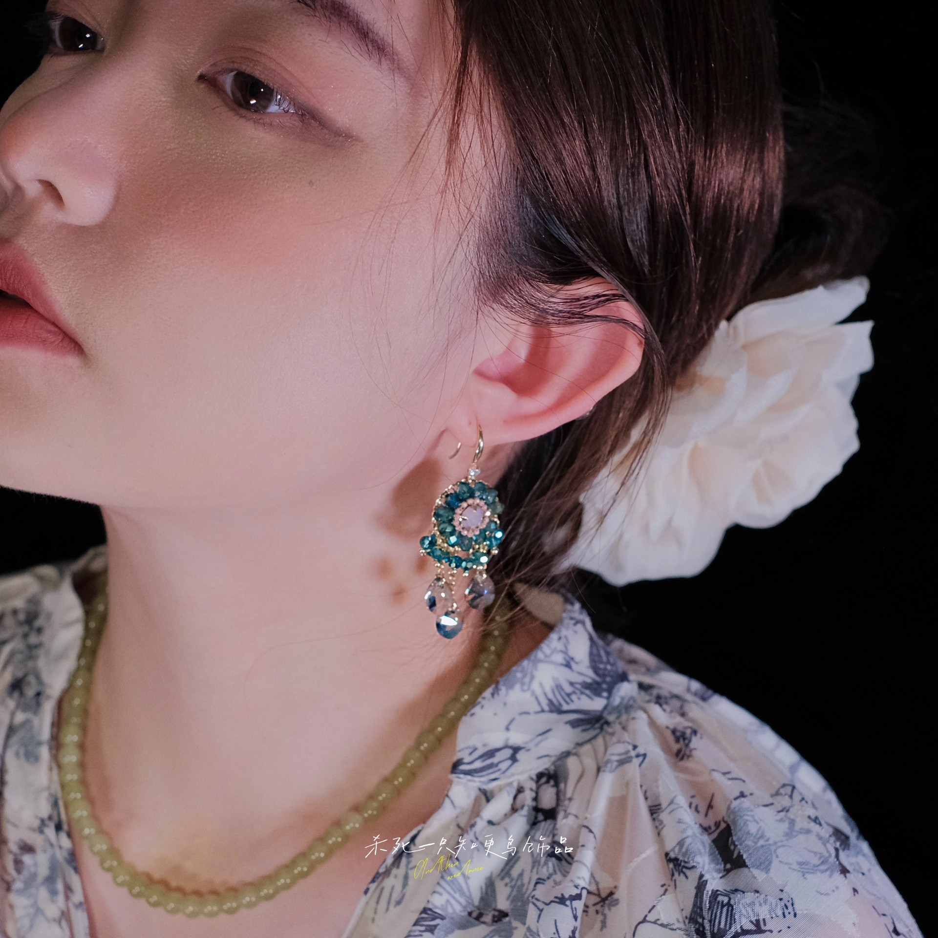 《孔雀公主》复古小众民族风波西米亚流苏绿水晶长款耳饰耳环耳夹