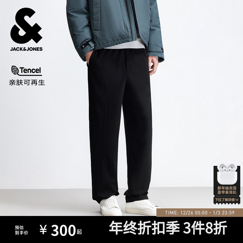 杰克琼斯秋冬季男装时尚潮流宽松休闲裤长裤子刺绣设计感下装男款
