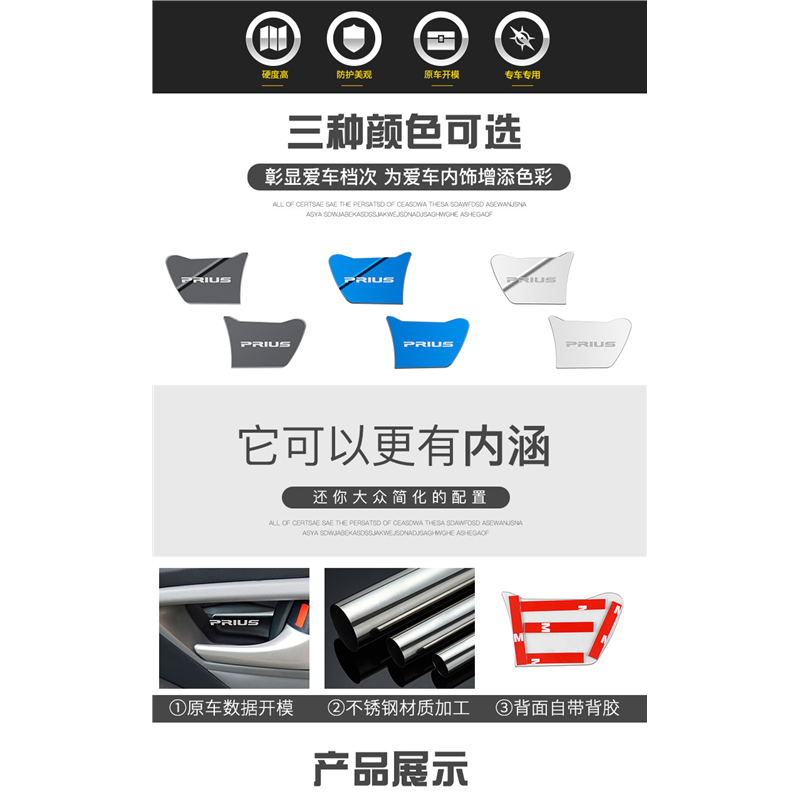 适用于普锐斯PRIUS 30系内饰改装不锈钢内门碗装饰贴内拉手槽亮片