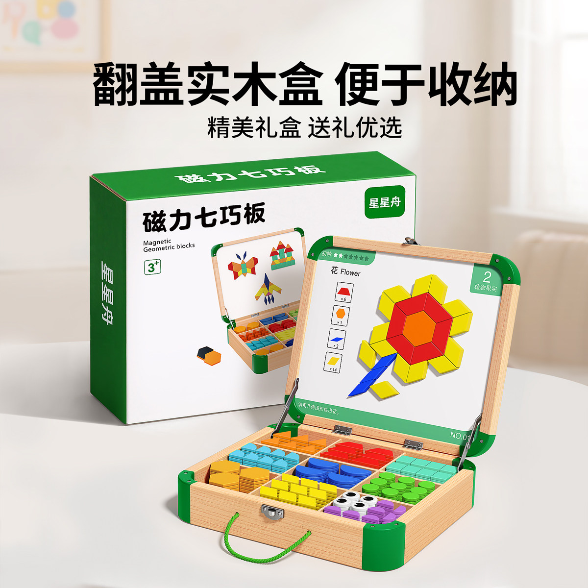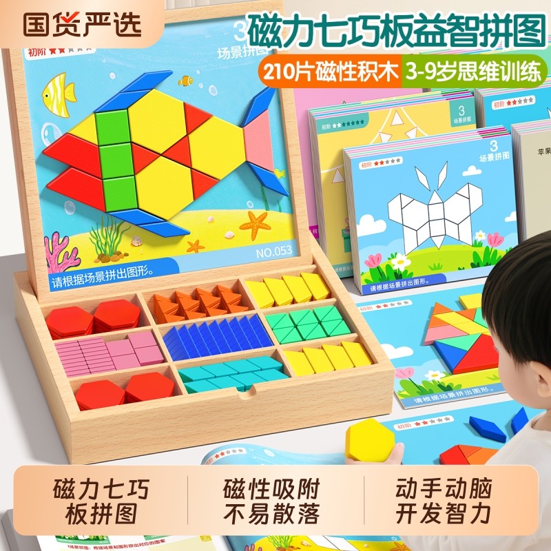 七巧板磁力拼图3到6岁儿童益智玩具积木幼儿园开发智力动脑思维