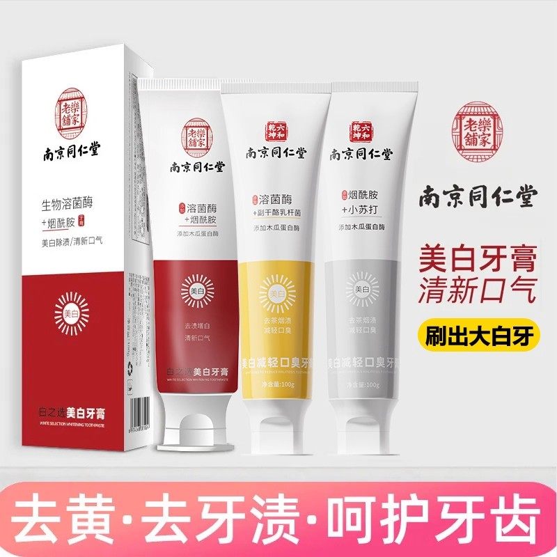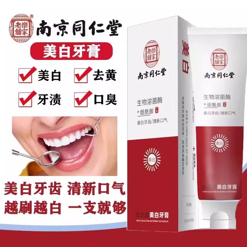 【正品】南京同仁堂牙膏生物溶酶益生菌烟酰胺小苏打亮白去渍去黄