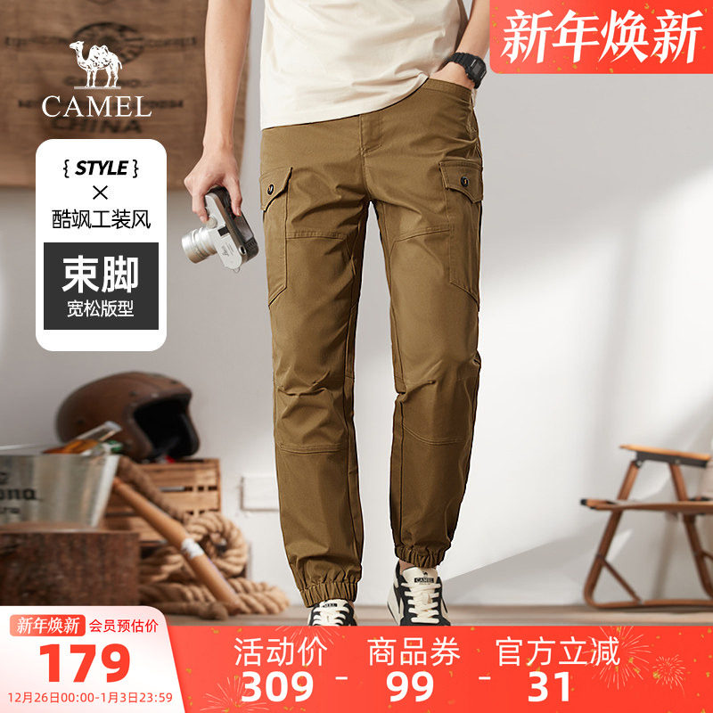 骆驼男装休闲裤男款运动新款宽松透气潮流时尚长裤户外工装束脚裤