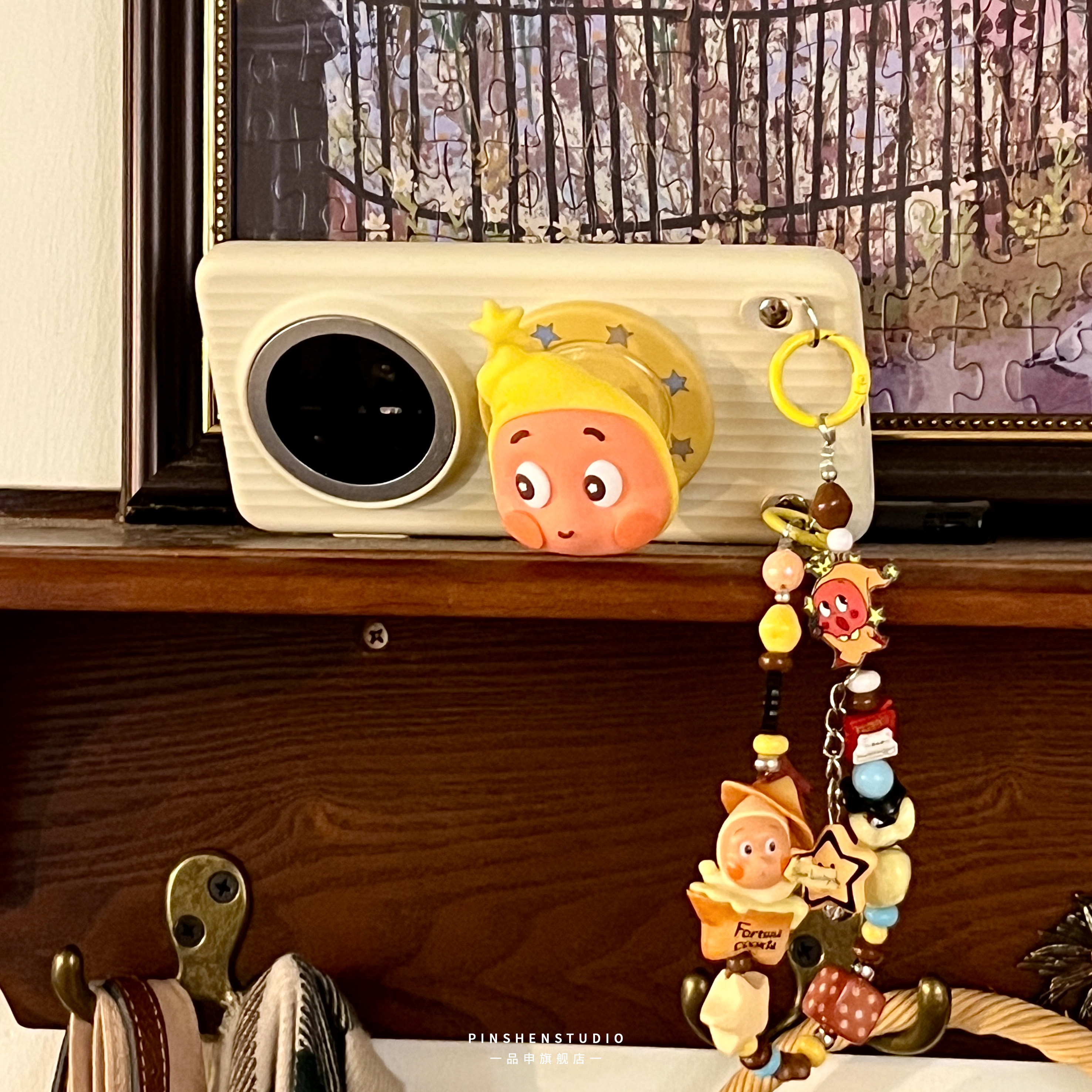品申原创pc轻薄奶黄竖纹星星人磁吸支架手提链条适用华为mate80pro手机壳全包防摔高级感ins新款苹果17保护套