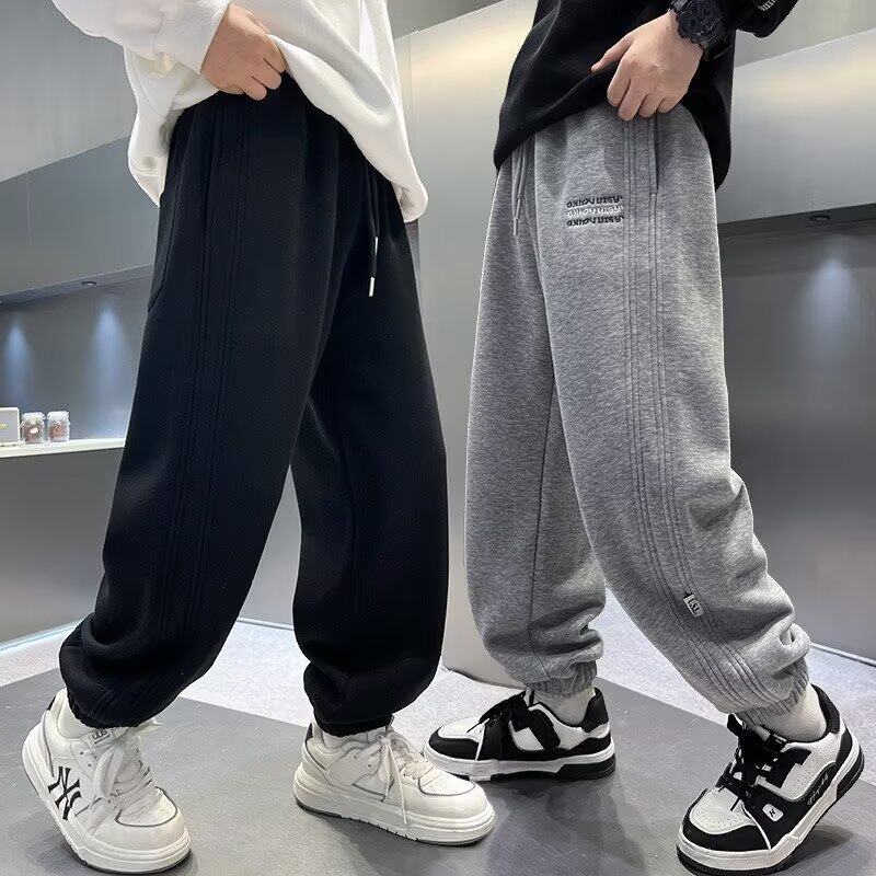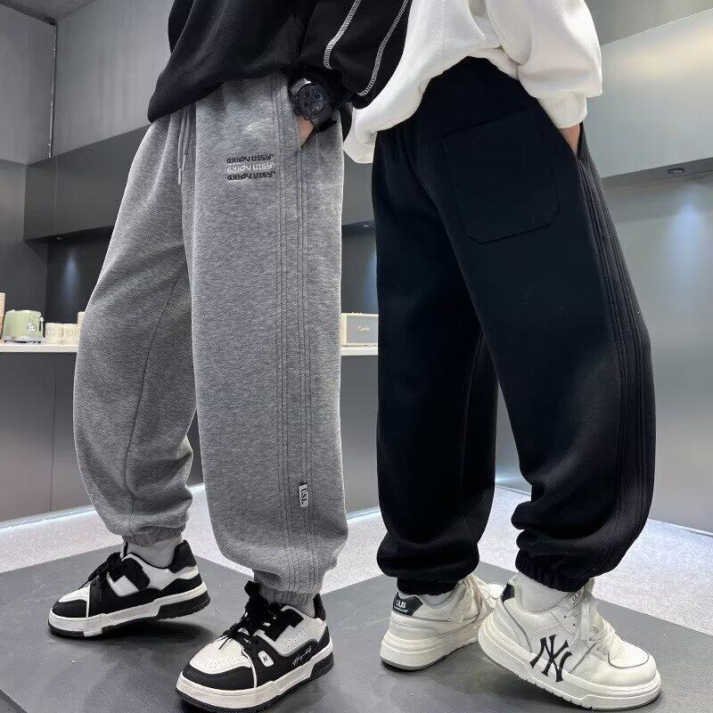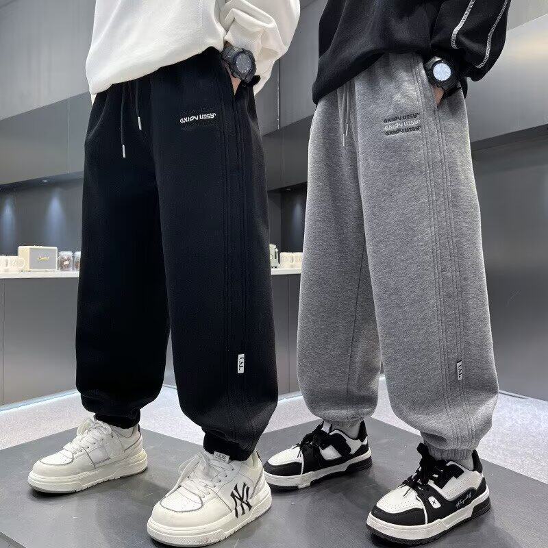 男童裤子春秋新款束脚裤儿童运动卫裤春中大童长裤胖孩黑色初中生