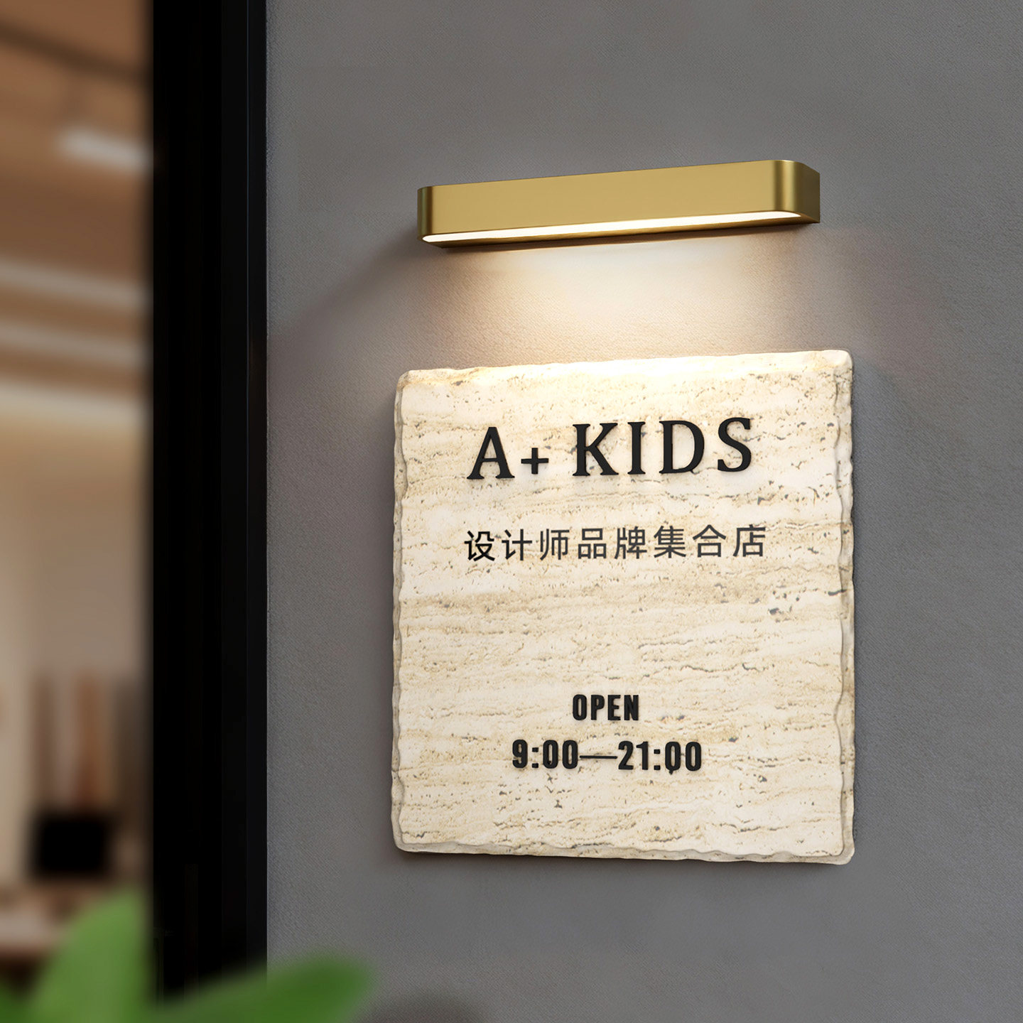 民宿酒店天然大理石挂牌定制高档会所门口洞石标识牌店铺带灯招牌