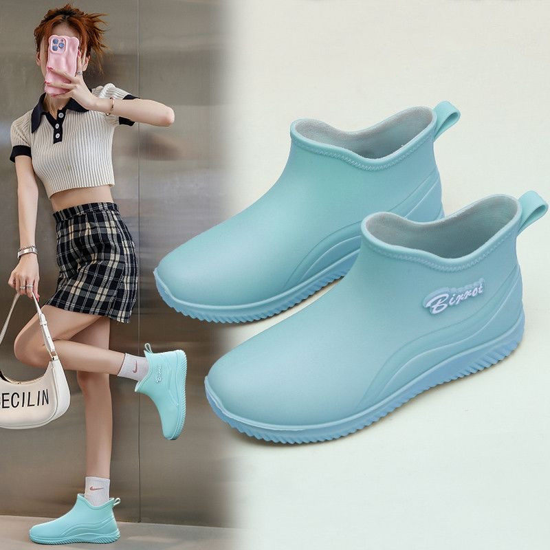 低帮女士雨鞋厨房厨师农用下水雨靴防水防滑水鞋轻便平底胶鞋短筒