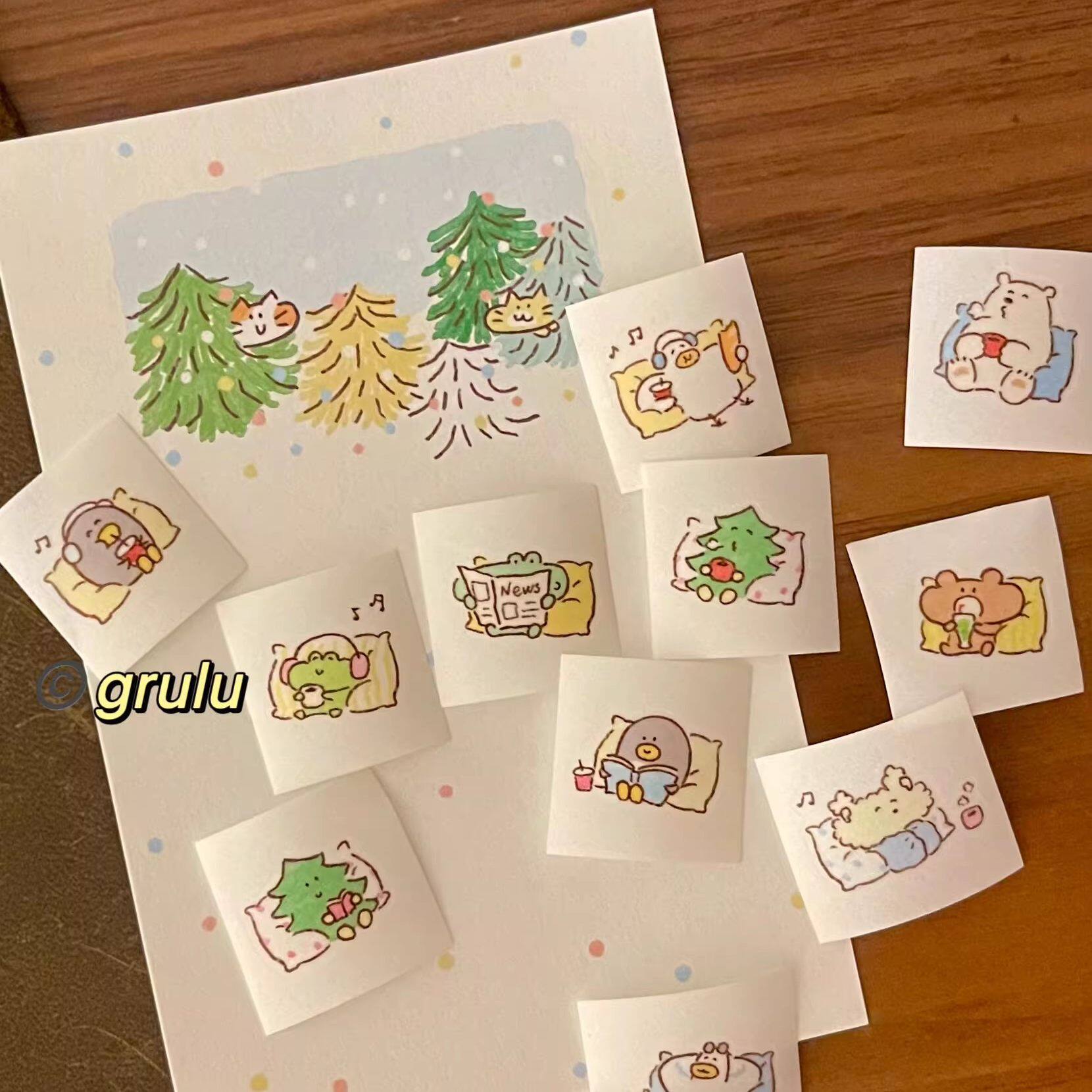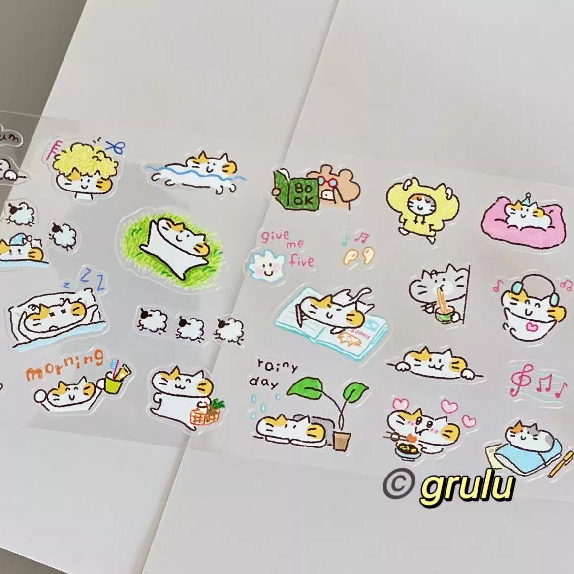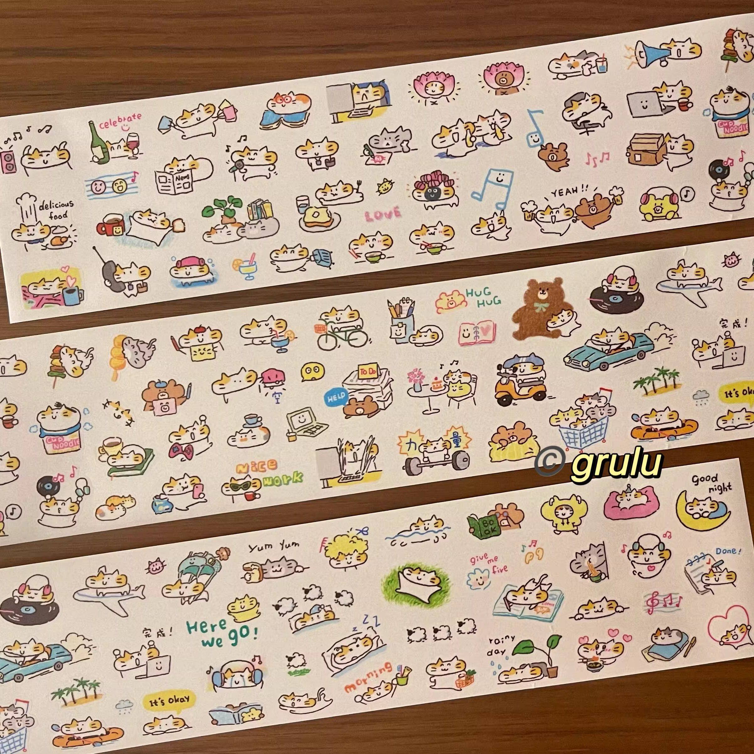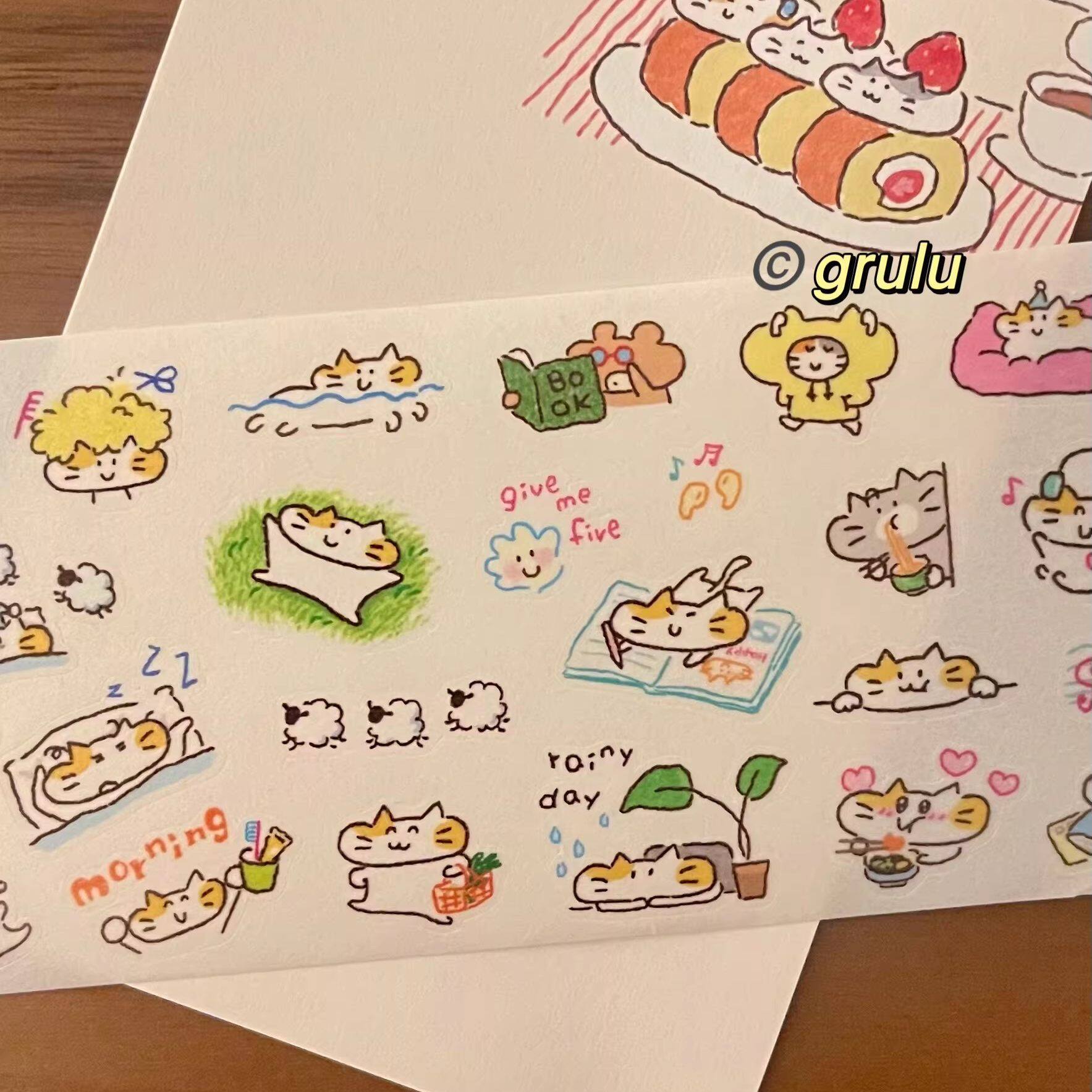 grulu分装小靠枕猫猫心情日常生活 模切胶带和纸pet手帐拼贴