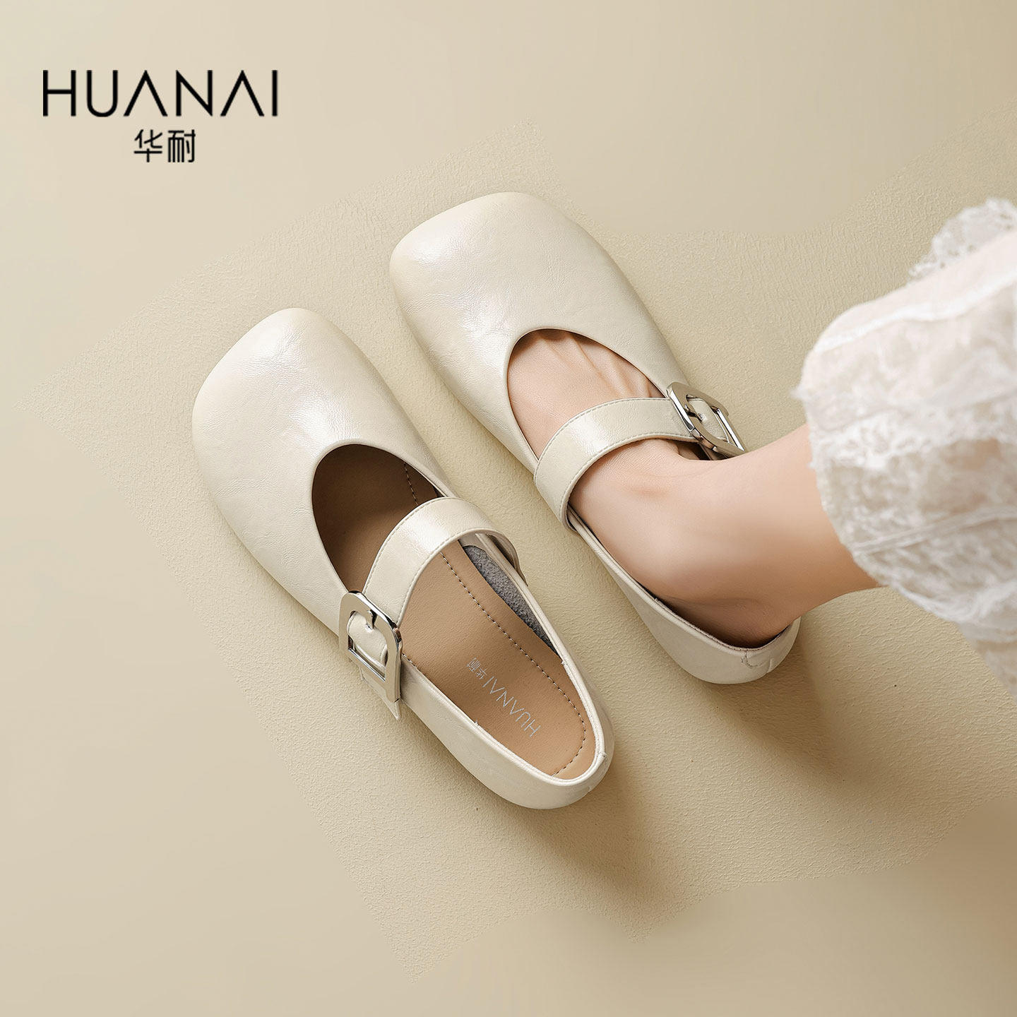 华耐高跟玛丽珍鞋女秋季2026新款黑白银色法式配裙子厚底小皮鞋