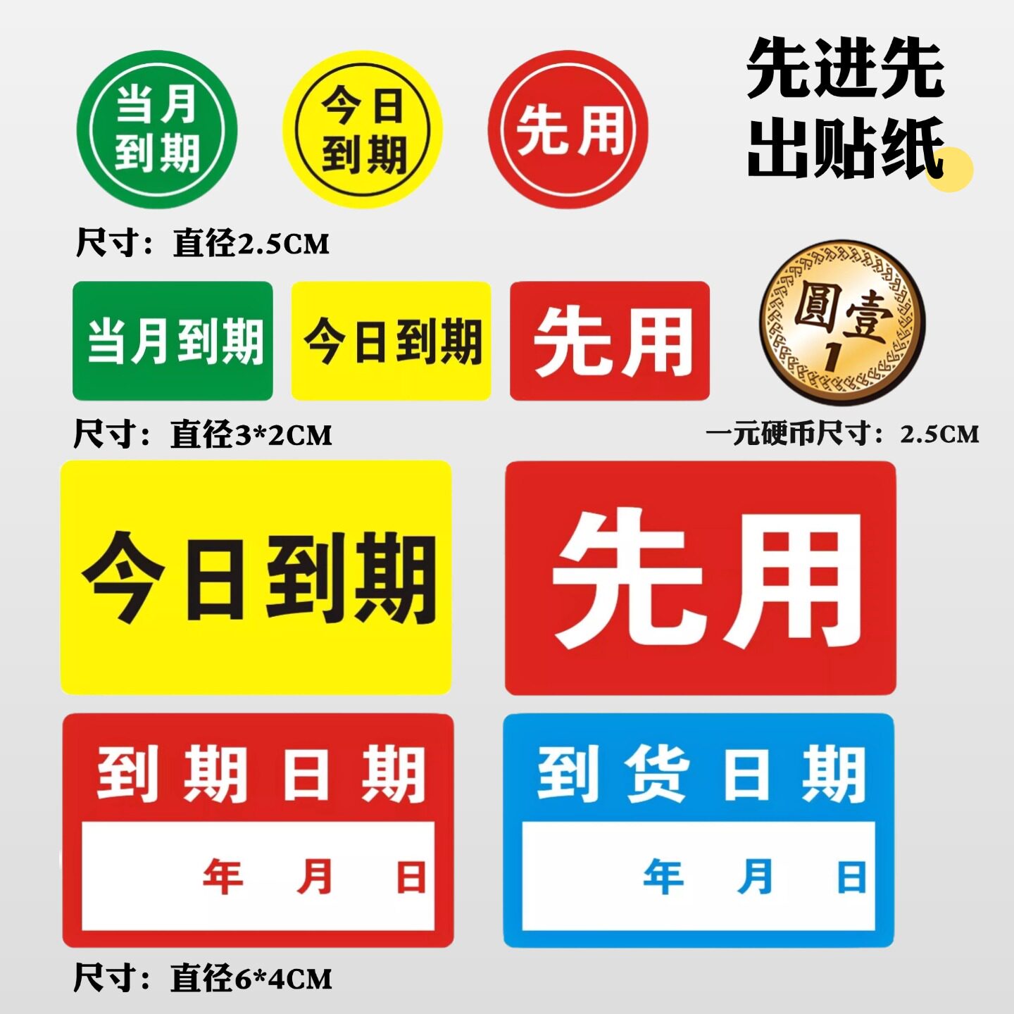 今日到期食品售馨标签圆形酒店食材先进先出后用不干胶仓库当月临期贴纸厨房日期
