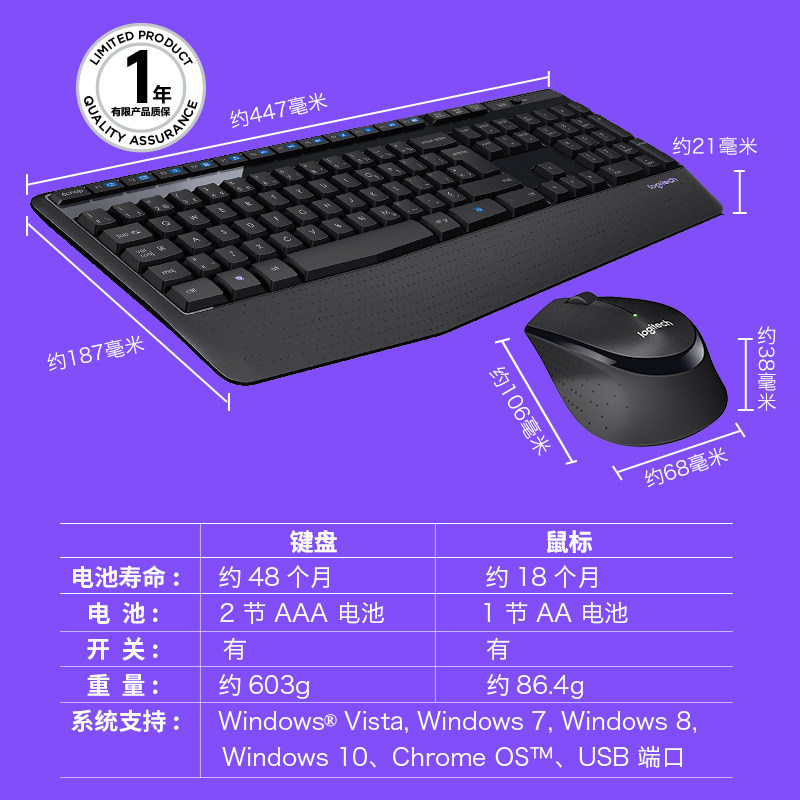罗技MK345无线键盘鼠标套装台式笔记本电脑家用办公游戏可拆包