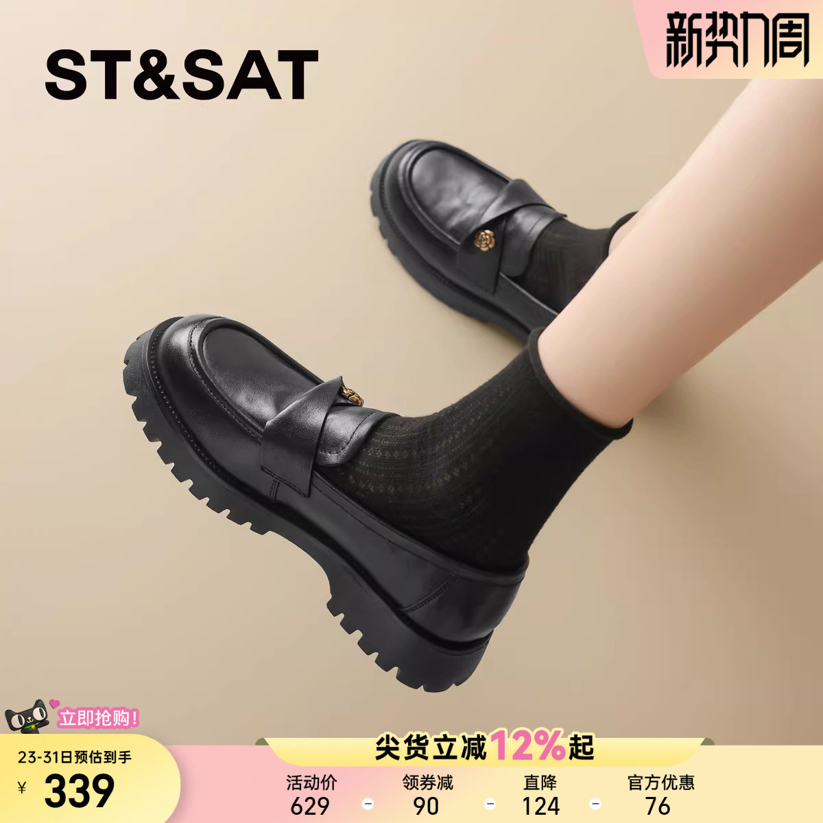 星期六爆款山茶花乐福鞋女2025新款英伦厚底小皮鞋一脚蹬单鞋