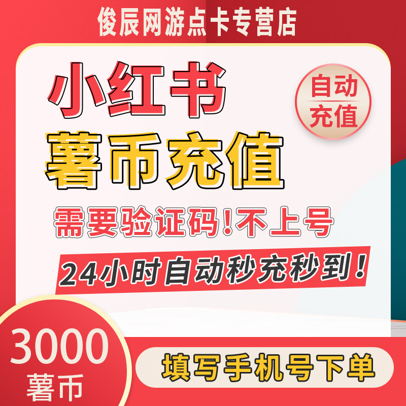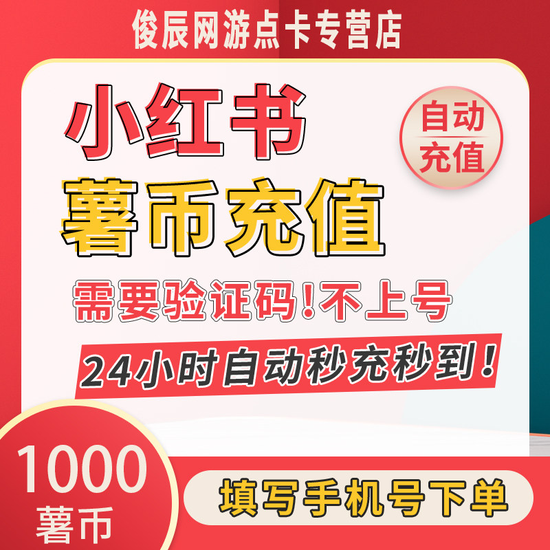 自动充值 小红xhs书薯币100/300/750/1000个充值薯币薯条3000署币