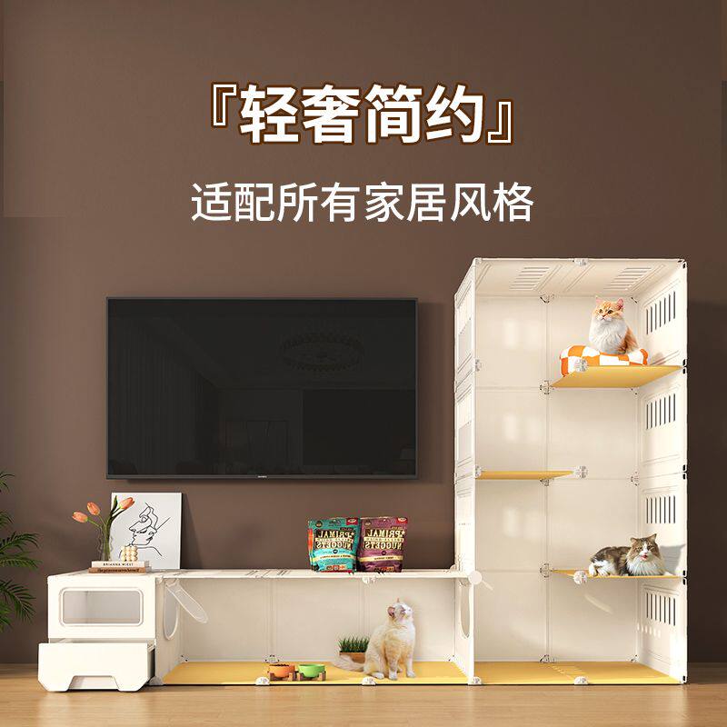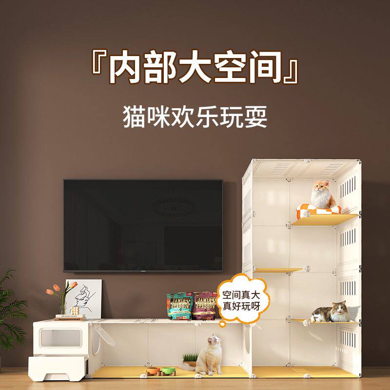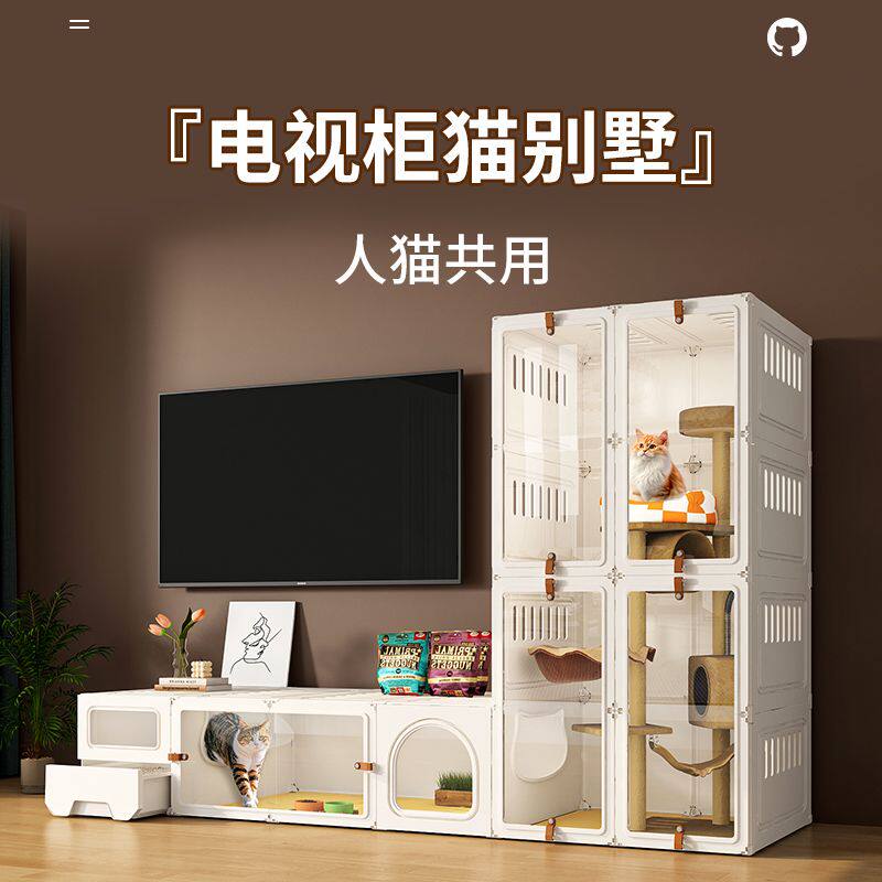 电视柜猫别墅不占地带厕所一体式全景透明人猫共用电视柜猫窝一体