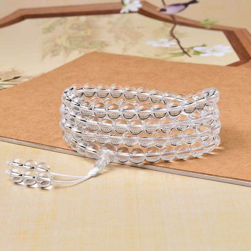 白水晶108颗佛珠佛串念珠手串多圈景区寺庙琉璃同款饰品长辈礼物