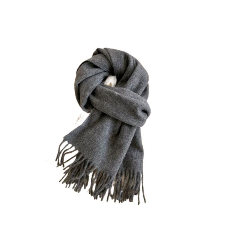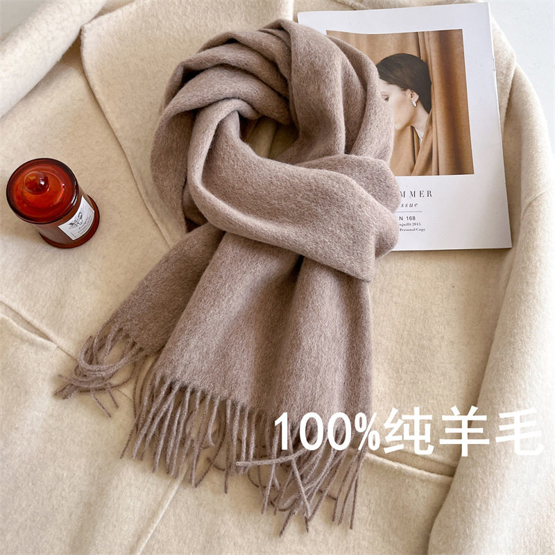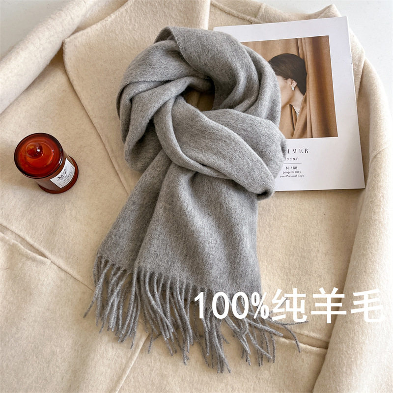 灰色围巾100%纯羊毛新款保暖情侣学生秋冬披肩绵羊毛实用蓝色纯色