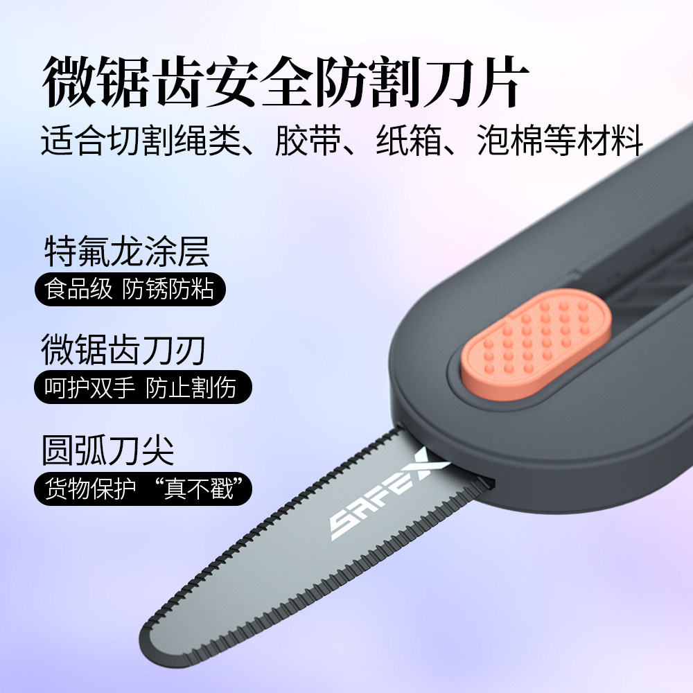美国SAFEX安全不粘胶美工刀不锈钢自动锁定拆快递包裹专用刀防割小刀钥匙扣开箱刀伸缩便携式快递刀