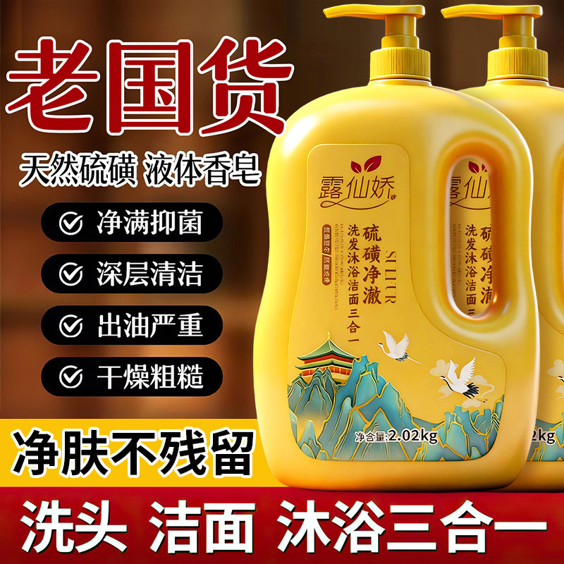 硫磺沐浴露净爽洗发洗脸洗澡三合一持久留香大容量家庭装除螨香皂