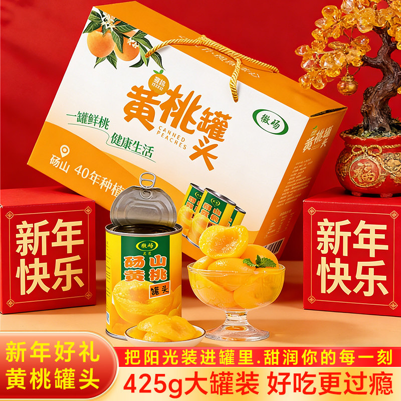 黄桃罐头正品整箱装425克*12罐砀山特产批发新鲜水果罐头礼盒新年