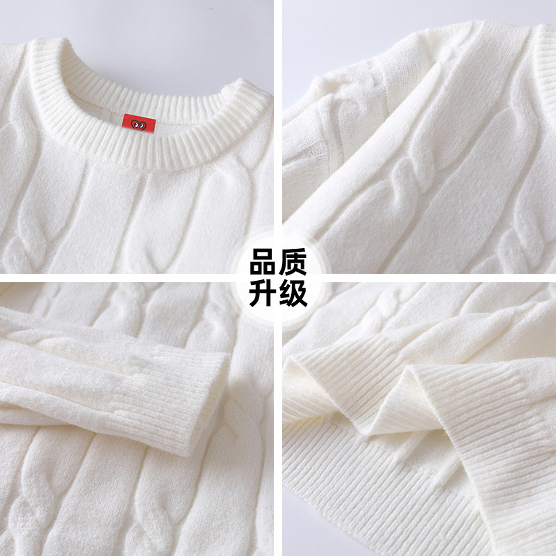 慵懒风麻花圆领套头针织打底衫毛衣