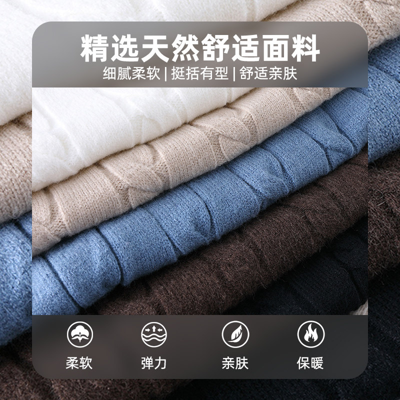 啄木鸟冬季毛衣男加绒加厚2025新款保暖半高领男士羊毛打底针织衫